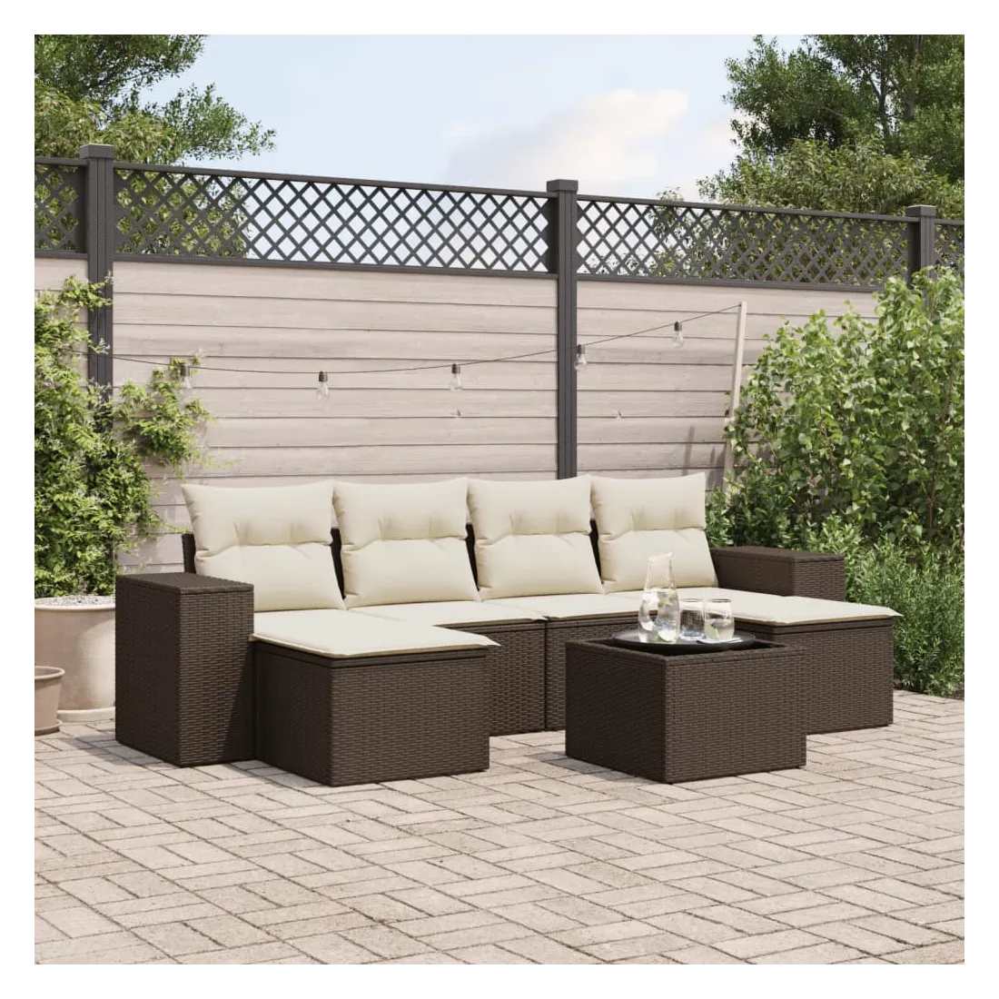 Cet ensemble de canapés de jardin est le complément parfait de votre arrière-cour, terrasse ou patio, offrant un espace confortable et accueillant pour discuter avec la famille et les amis ou simplement se détendre et profiter de l'extérieur. Matériau durable : la résine tressée, également connue sous le nom de poly rotin, est un matériau synthétique solide et nécessitant peu d'entretien qui ressemble au rotin naturel. Il est léger, facile à nettoyer et couramment utilisé pour les meubles d'extérieur en raison de sa durabilité et de ses propriétés de résistance aux intempéries.Fonction de rangement avec sac résistant à l'eau : le mobilier de jardin dispose d'un espace de rangement sous l'assise, complété par un sac résistant à l'eau pour ranger coussins, jouets et autres objets. Le sac intérieur peut être solidement fixé au mobilier d'extérieur grâce à des attaches auto-agrippantes pour plus de stabilité.Dessus en verre : le dessus de la table d'extérieur est fabriqué en verre trempé solide et durable, ce qui le rend facile à nettoyer avec un chiffon humide et ajoute une touche d'élégance à votre espace extérieur.Housse amovible et lavable : ces coussins de siège sont dotés de housses amovibles pour un lavage et un entretien faciles.Conception modulaire : cet ensemble de meubles d'extérieur a une conception modulaire, ce qui le rend complètement flexible et facile à déplacer, afin que vous puissiez créer un agencement de meubles d'extérieur personnalisé. Bon à savoir :Pour que vos meubles d'extérieur restent beaux, nous vous recommandons de les protéger avec une housse imperméable.