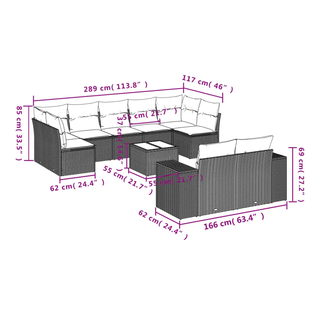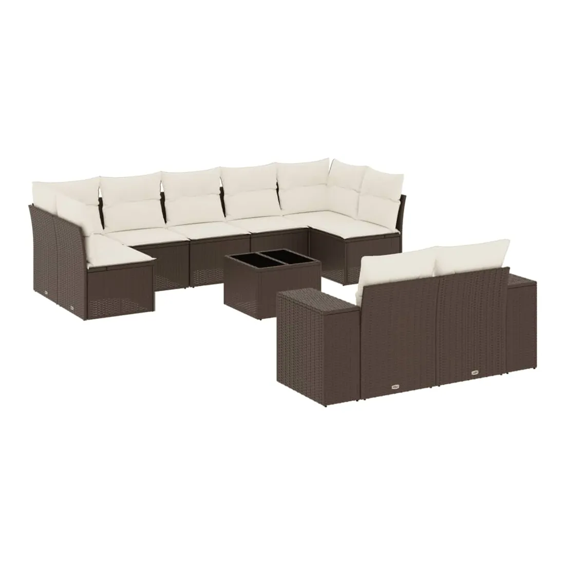 Salon de jardin 10 pcs avec coussins marron résine tressée
