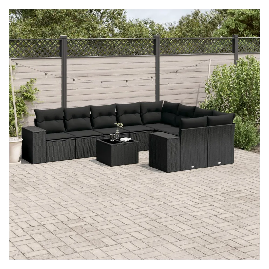 Salon de jardin 10 pcs avec coussins noir résine tressée