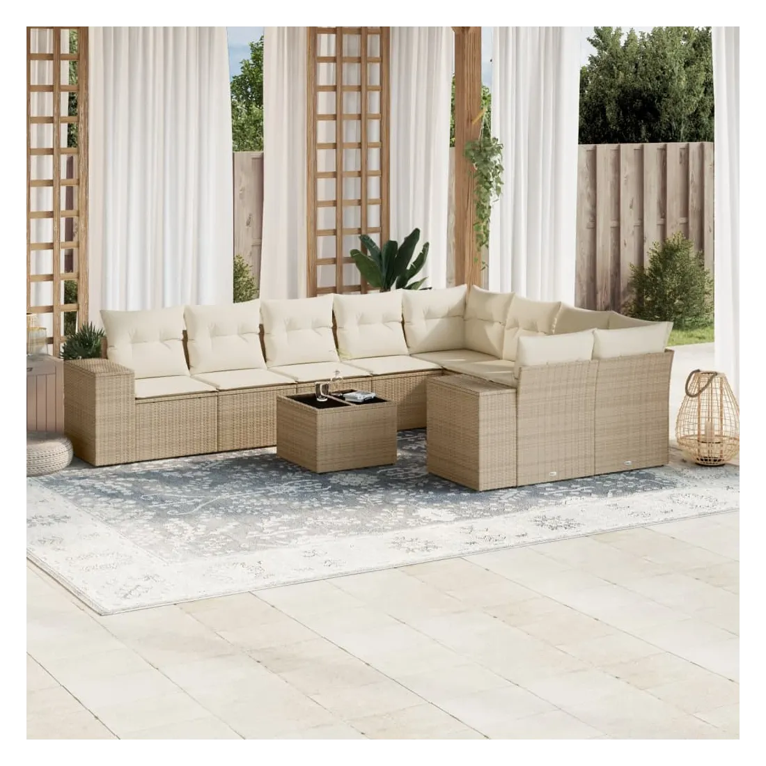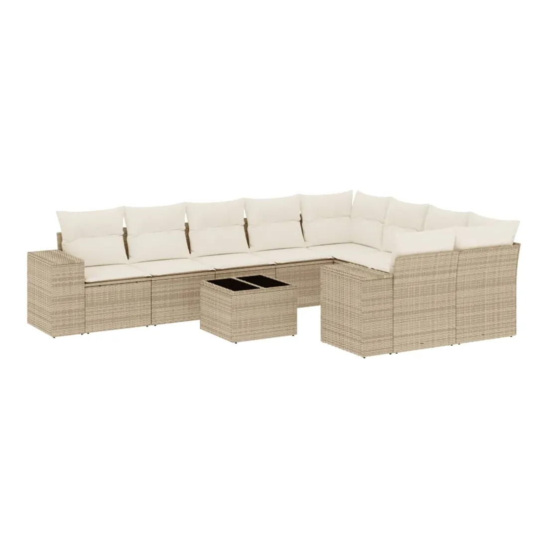 Salon de jardin avec coussins 10 pcs beige résine tressée
