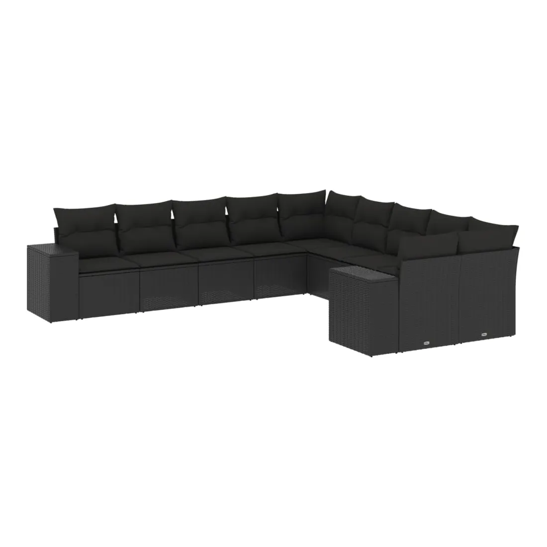 Salon de jardin 10 pcs avec coussins noir résine tressée