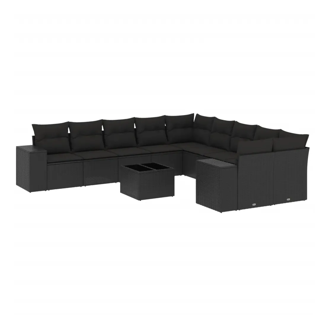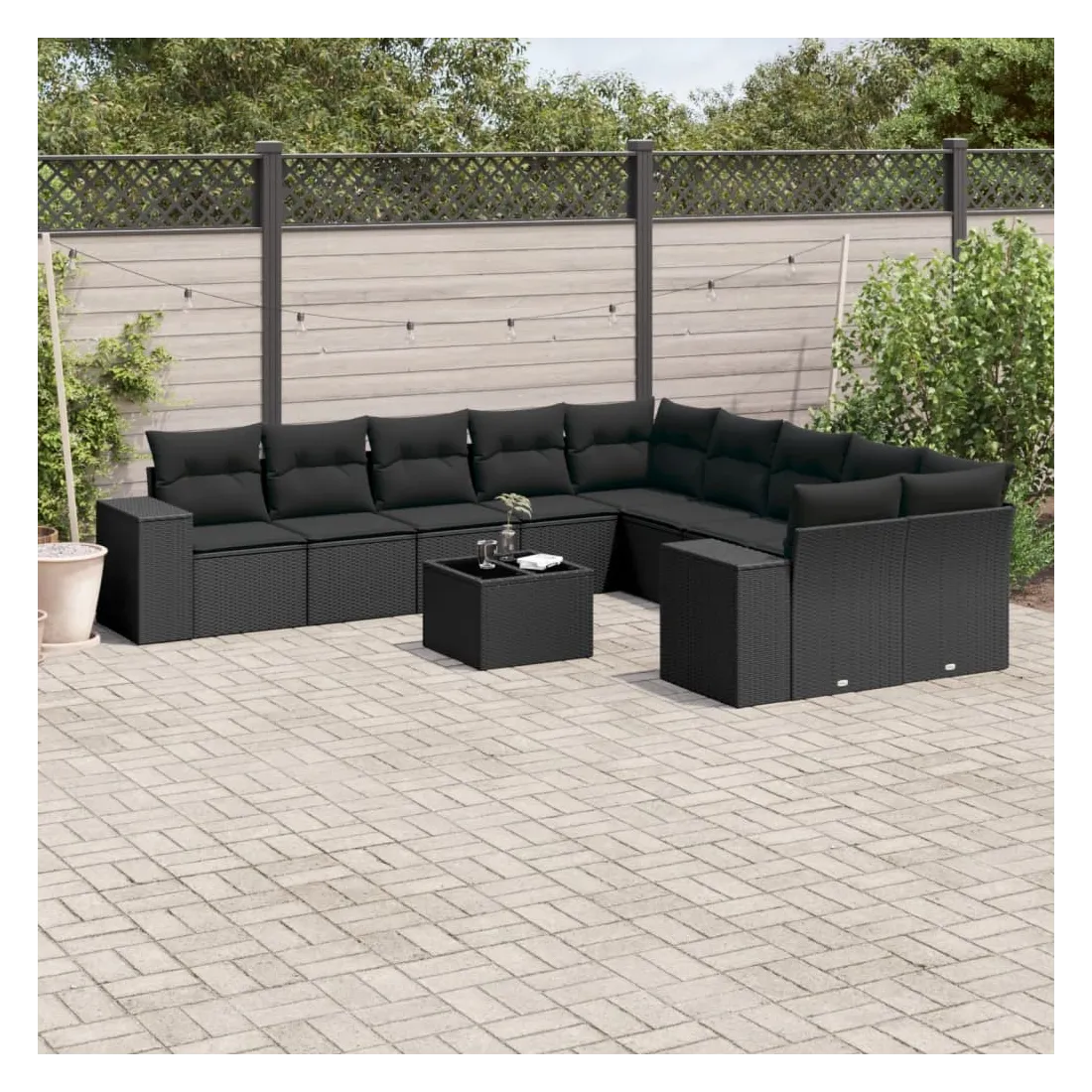 Salon de jardin 11 pcs avec coussins noir résine tressée