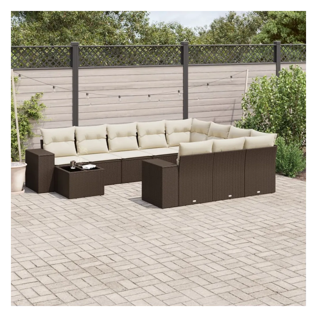 Salon de jardin et coussins 11 pcs marron résine tressée