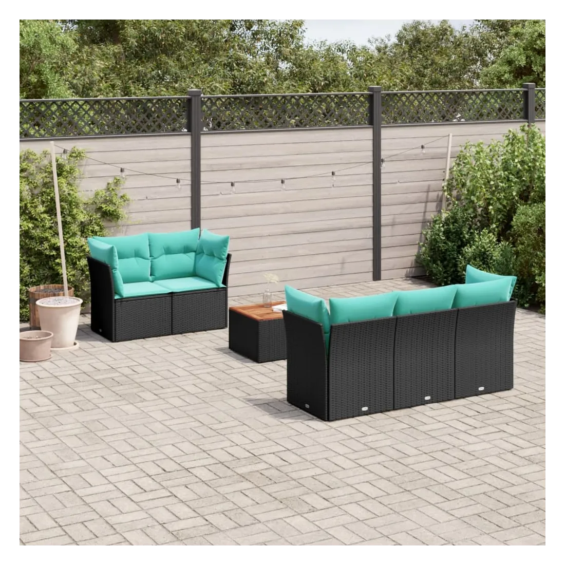Cet ensemble de canapés de jardin est le complément parfait de votre arrière-cour, terrasse ou patio, offrant un espace confortable et accueillant pour discuter avec la famille et les amis ou simplement se détendre et profiter de l'extérieur. Matériau durable : la résine tressée, également connue sous le nom de poly rotin, est un matériau synthétique solide et nécessitant peu d'entretien qui ressemble au rotin naturel. Il est léger, facile à nettoyer et couramment utilisé pour les meubles d'extérieur en raison de sa durabilité et de ses propriétés de résistance aux intempéries.Fonction de rangement avec sac résistant à l'eau : chaque siège de jardin dispose d'un espace de rangement sous l'assise, complété par un sac résistant à l'eau pour ranger les coussins, les jouets et d'autres objets. Les sacs intérieurs sont dotés d'un couvercle et peuvent être solidement fixés aux sièges à l'aide de bandes auto-agrippantes pour plus de stabilité.Dessus stable et facile à nettoyer : cette table de jardin a un dessus en bois d'acacia robuste, durable et facile à nettoyer avec un chiffon humide.Housse amovible et lavable : ces coussins de siège sont dotés de housses amovibles pour un lavage et un entretien faciles.Conception modulaire : cet ensemble de meubles d'extérieur a une conception modulaire, ce qui le rend complètement flexible et facile à déplacer, afin que vous puissiez créer un agencement de meubles d'extérieur personnalisé. Bon à savoir :Pour que vos meubles d'extérieur restent beaux, nous vous recommandons de les protéger avec une housse imperméable.