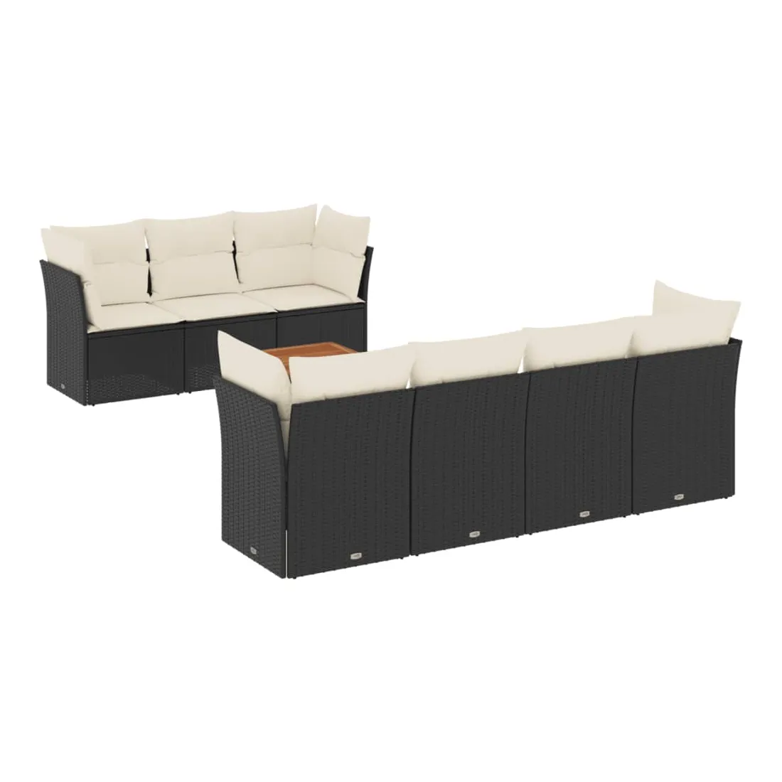 Salon de jardin 8 pcs avec coussins noir résine tressée