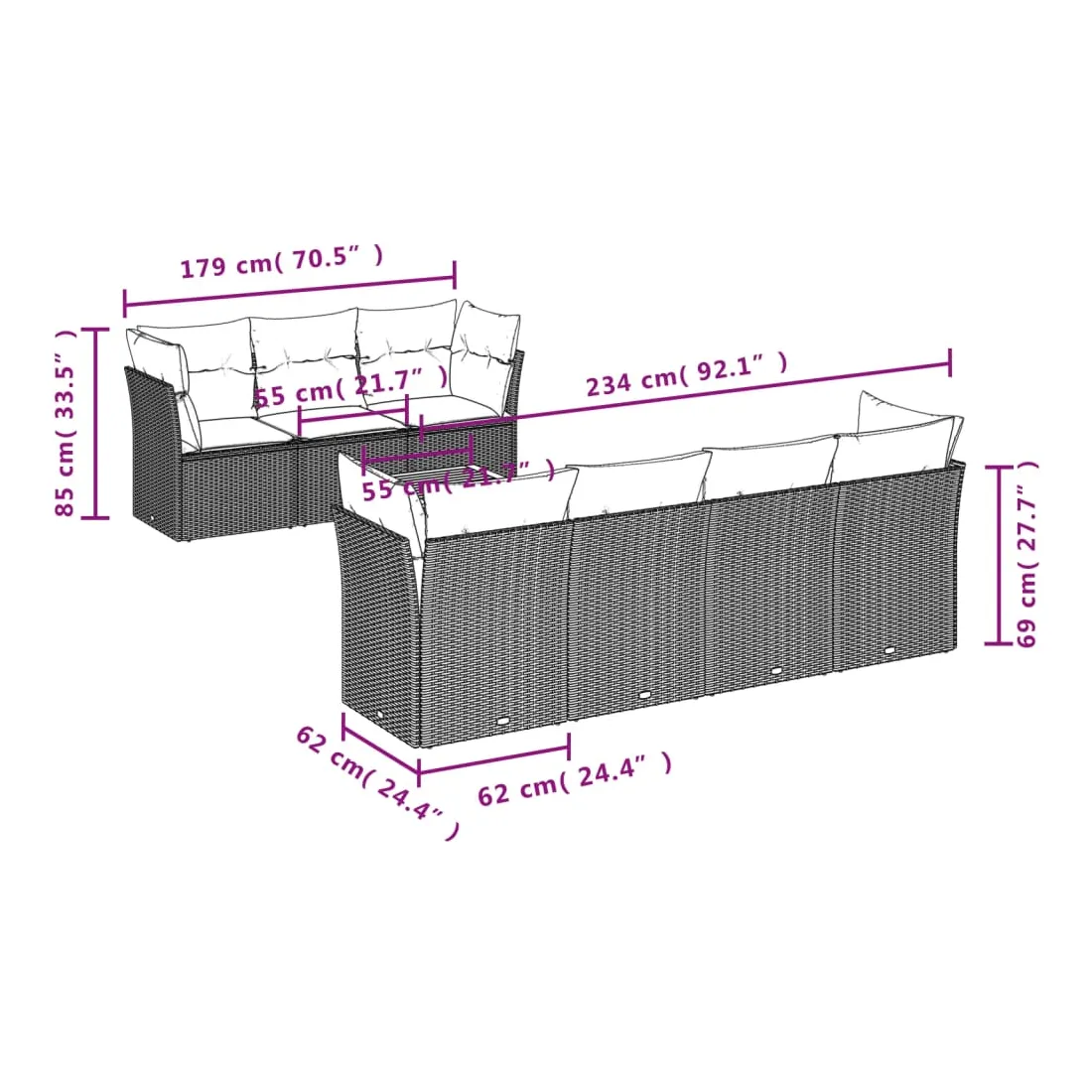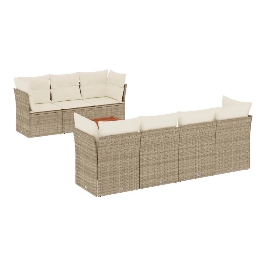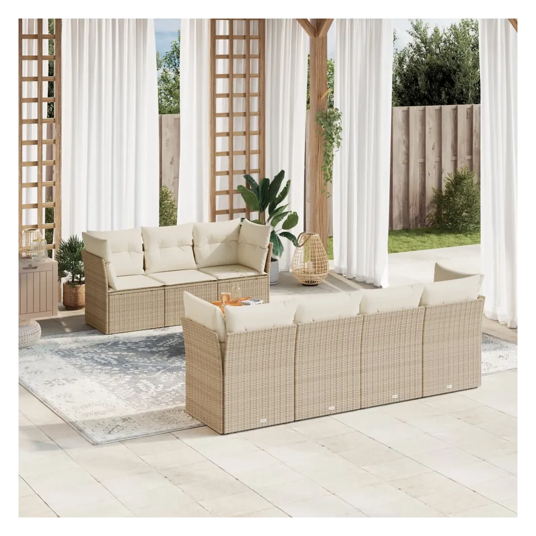 Salon de jardin avec coussins 8 pcs beige résine tressée