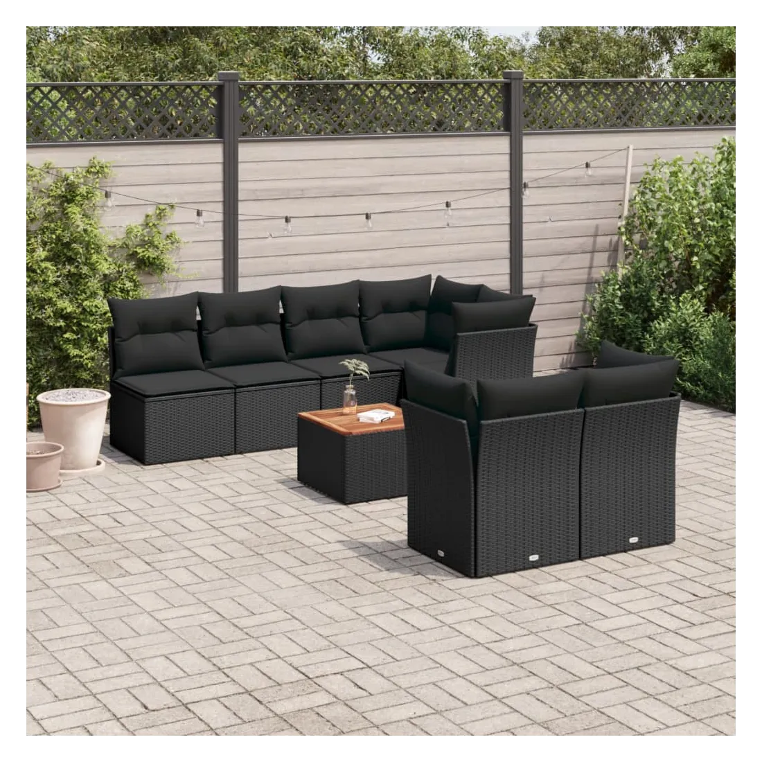 Salon de jardin 8 pcs avec coussins noir résine tressée