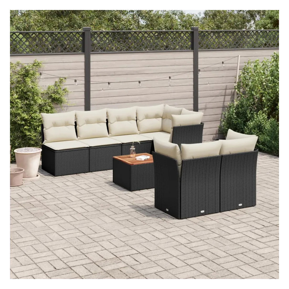 Cet ensemble de canapés de jardin est le complément parfait de votre arrière-cour, terrasse ou patio, offrant un espace confortable et accueillant pour discuter avec la famille et les amis ou simplement se détendre et profiter de l'extérieur. Matériau durable : la résine tressée, également connue sous le nom de poly rotin, est un matériau synthétique solide et nécessitant peu d'entretien qui ressemble au rotin naturel. Il est léger, facile à nettoyer et couramment utilisé pour les meubles d'extérieur en raison de sa durabilité et de ses propriétés de résistance aux intempéries.Fonction de rangement avec sac résistant à l'eau : chaque siège de jardin dispose d'un espace de rangement sous l'assise, complété par un sac résistant à l'eau pour ranger les coussins, les jouets et d'autres objets. Les sacs intérieurs sont dotés d'un couvercle et peuvent être solidement fixés aux sièges à l'aide de bandes auto-agrippantes pour plus de stabilité.Dessus stable et facile à nettoyer : cette table de jardin a un dessus en bois d'acacia robuste, durable et facile à nettoyer avec un chiffon humide.Housse amovible et lavable : ces coussins de siège sont dotés de housses amovibles pour un lavage et un entretien faciles.Conception modulaire : cet ensemble de meubles d'extérieur a une conception modulaire, ce qui le rend complètement flexible et facile à déplacer, afin que vous puissiez créer un agencement de meubles d'extérieur personnalisé. Bon à savoir :Pour que vos meubles d'extérieur restent beaux, nous vous recommandons de les protéger avec une housse imperméable.