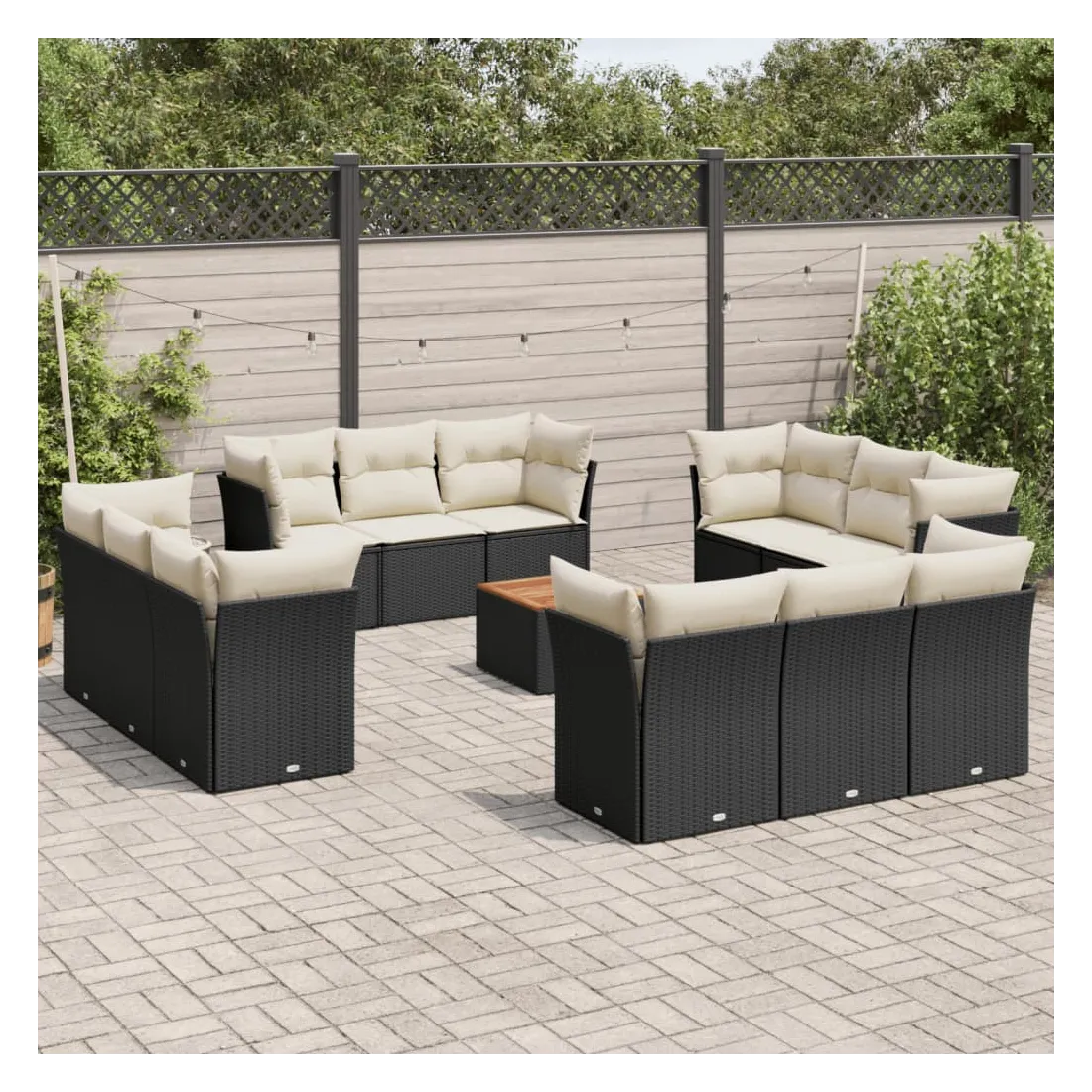 Cet ensemble de canapés de jardin est le complément parfait de votre arrière-cour, terrasse ou patio, offrant un espace confortable et accueillant pour discuter avec la famille et les amis ou simplement se détendre et profiter de l'extérieur. Matériau durable : la résine tressée, également connue sous le nom de poly rotin, est un matériau synthétique solide et nécessitant peu d'entretien qui ressemble au rotin naturel. Il est léger, facile à nettoyer et couramment utilisé pour les meubles d'extérieur en raison de sa durabilité et de ses propriétés de résistance aux intempéries.Fonction de rangement avec sac résistant à l'eau : chaque siège de jardin dispose d'un espace de rangement sous l'assise, complété par un sac résistant à l'eau pour ranger les coussins, les jouets et d'autres objets. Les sacs intérieurs sont dotés d'un couvercle et peuvent être solidement fixés aux sièges à l'aide de bandes auto-agrippantes pour plus de stabilité.Dessus stable et facile à nettoyer : cette table de jardin a un dessus en bois d'acacia robuste, durable et facile à nettoyer avec un chiffon humide.Housse amovible et lavable : ces coussins de siège sont dotés de housses amovibles pour un lavage et un entretien faciles.Conception modulaire : cet ensemble de meubles d'extérieur a une conception modulaire, ce qui le rend complètement flexible et facile à déplacer, afin que vous puissiez créer un agencement de meubles d'extérieur personnalisé. Bon à savoir :Pour que vos meubles d'extérieur restent beaux, nous vous recommandons de les protéger avec une housse imperméable.