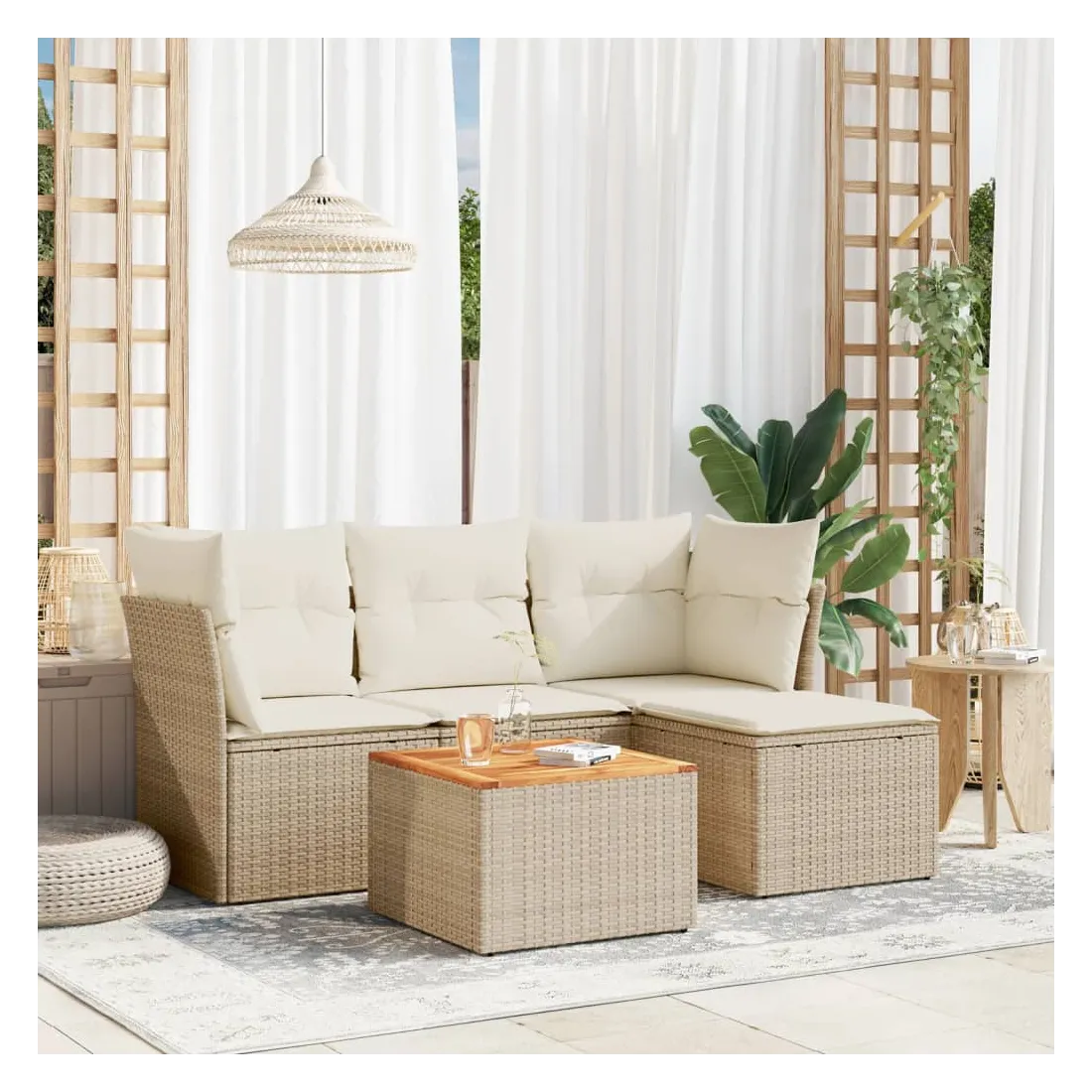 Cet ensemble de canapés de jardin est le complément parfait de votre arrière-cour, terrasse ou patio, offrant un espace confortable et accueillant pour discuter avec la famille et les amis ou simplement se détendre et profiter de l'extérieur. Matériau durable : la résine tressée, également connue sous le nom de poly rotin, est un matériau synthétique solide et nécessitant peu d'entretien qui ressemble au rotin naturel. Il est léger, facile à nettoyer et couramment utilisé pour les meubles d'extérieur en raison de sa durabilité et de ses propriétés de résistance aux intempéries.Fonction de rangement avec sac résistant à l'eau : chaque siège de jardin dispose d'un espace de rangement sous l'assise, complété par un sac résistant à l'eau pour ranger les coussins, les jouets et d'autres objets. Les sacs intérieurs sont dotés d'un couvercle et peuvent être solidement fixés aux sièges à l'aide de bandes auto-agrippantes pour plus de stabilité.Dessus stable et facile à nettoyer : cette table de jardin a un dessus en bois d'acacia robuste, durable et facile à nettoyer avec un chiffon humide.Pouf polyvalent : le tabouret est polyvalent, servant de repose-pieds confortable lorsque vous vous prélassez sur le canapé ou de siège supplémentaire dans votre jardin.Conception modulaire : cet ensemble de meubles d'extérieur a une conception modulaire, ce qui le rend complètement flexible et facile à déplacer, afin que vous puissiez créer un agencement de meubles d'extérieur personnalisé. Bon à savoir :Pour que vos meubles d'extérieur restent beaux, nous vous recommandons de les protéger avec une housse imperméable.