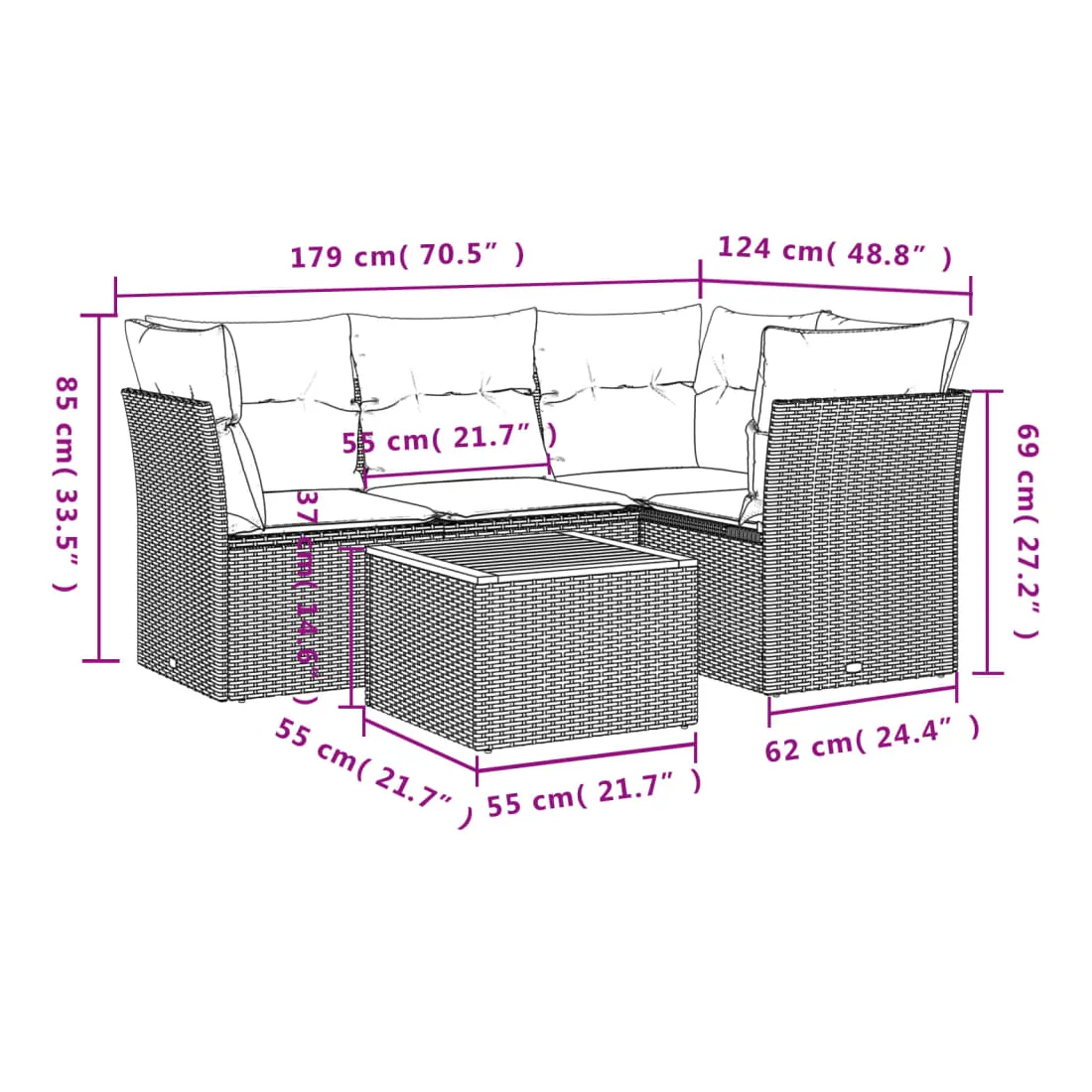 - Dimensions : 55 x 55 x 37 cm (L x l x H)