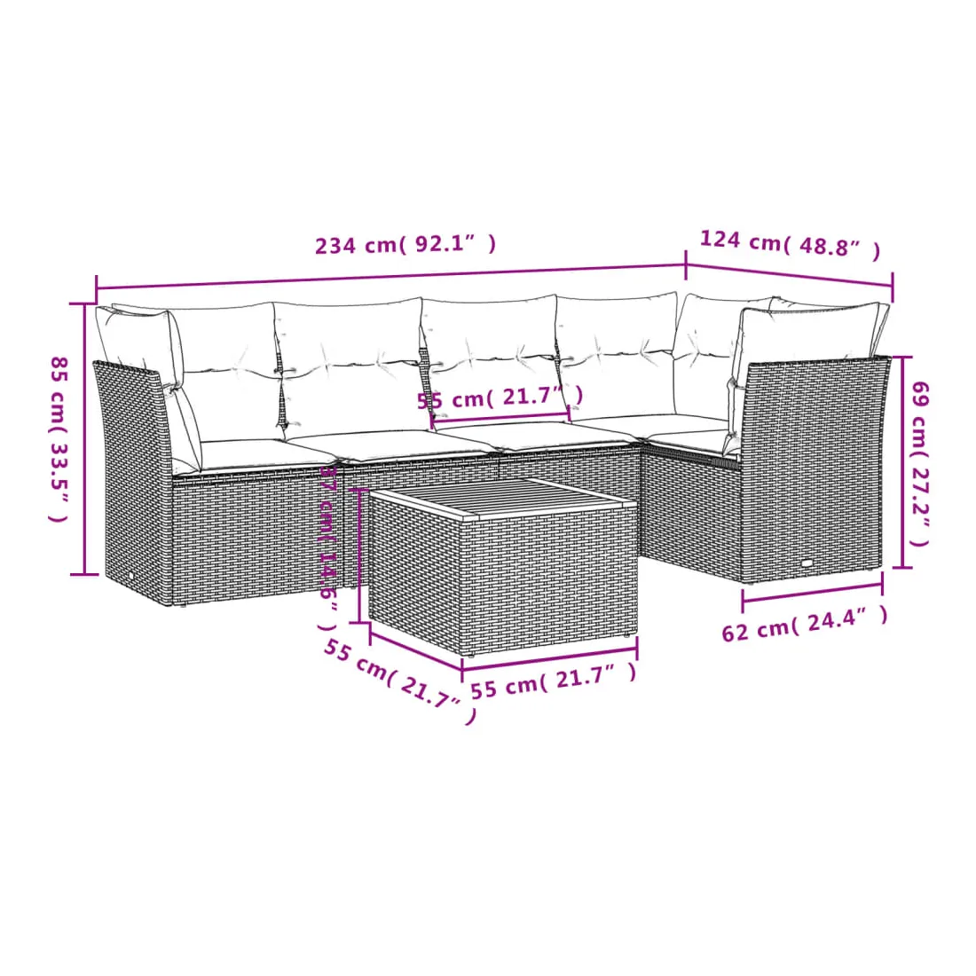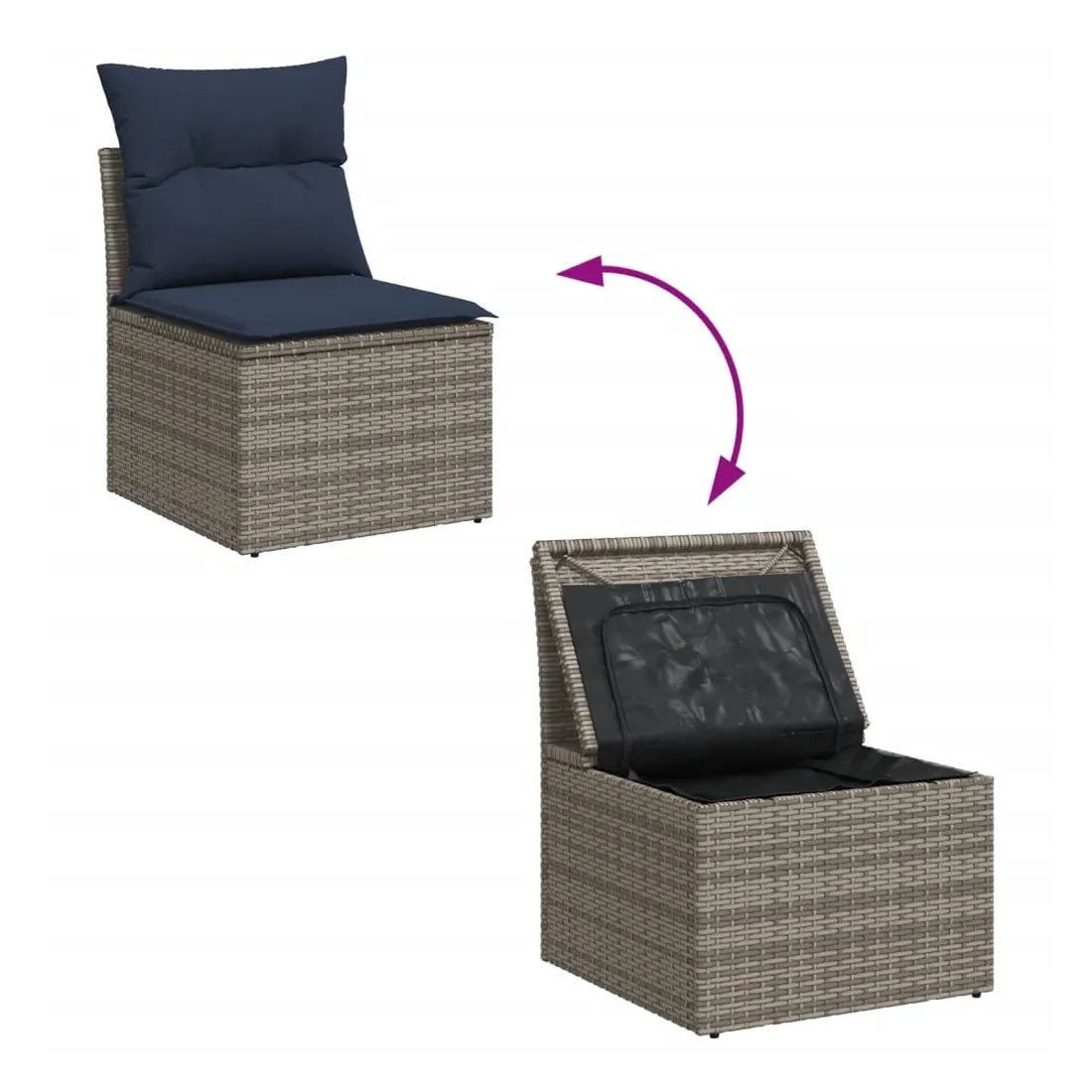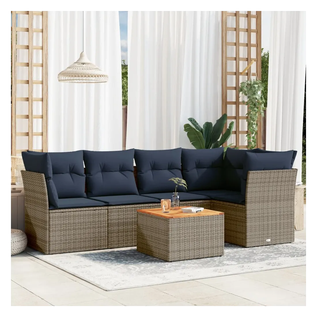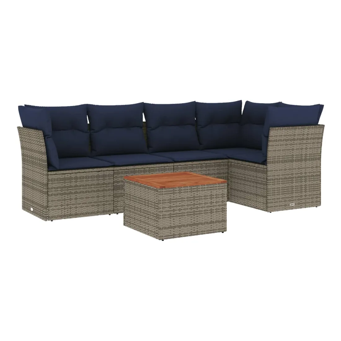 Salon de jardin 6 pcs avec coussins gris résine tressée