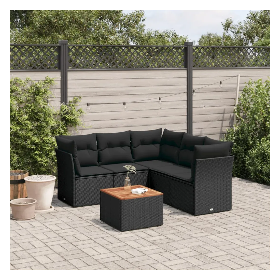 Cet ensemble de canapés de jardin est le complément parfait de votre arrière-cour, terrasse ou patio, offrant un espace confortable et accueillant pour discuter avec la famille et les amis ou simplement se détendre et profiter de l'extérieur. Matériau durable : la résine tressée, également connue sous le nom de poly rotin, est un matériau synthétique solide et nécessitant peu d'entretien qui ressemble au rotin naturel. Il est léger, facile à nettoyer et couramment utilisé pour les meubles d'extérieur en raison de sa durabilité et de ses propriétés de résistance aux intempéries.Fonction de rangement avec sac résistant à l'eau : chaque siège de jardin dispose d'un espace de rangement sous l'assise, complété par un sac résistant à l'eau pour ranger les coussins, les jouets et d'autres objets. Les sacs intérieurs sont dotés d'un couvercle et peuvent être solidement fixés aux sièges à l'aide de bandes auto-agrippantes pour plus de stabilité.Dessus stable et facile à nettoyer : cette table de jardin a un dessus en bois d'acacia robuste, durable et facile à nettoyer avec un chiffon humide.Housse amovible et lavable : ces coussins de siège sont dotés de housses amovibles pour un lavage et un entretien faciles.Conception modulaire : cet ensemble de meubles d'extérieur a une conception modulaire, ce qui le rend complètement flexible et facile à déplacer, afin que vous puissiez créer un agencement de meubles d'extérieur personnalisé. Bon à savoir :Pour que vos meubles d'extérieur restent beaux, nous vous recommandons de les protéger avec une housse imperméable.