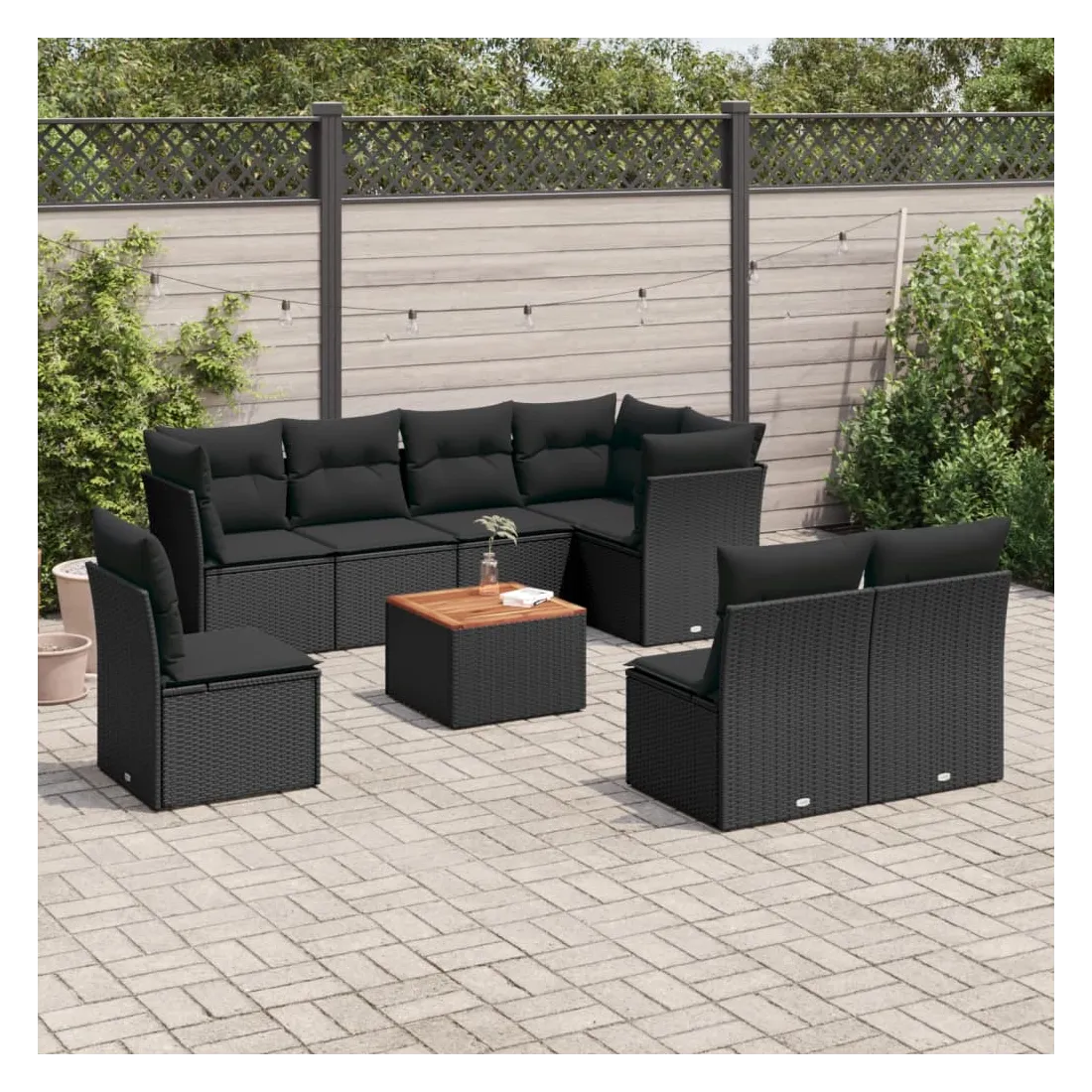 Cet ensemble de canapés de jardin est le complément parfait de votre arrière-cour, terrasse ou patio, offrant un espace confortable et accueillant pour discuter avec la famille et les amis ou simplement se détendre et profiter de l'extérieur. Matériau durable : la résine tressée, également connue sous le nom de poly rotin, est un matériau synthétique solide et nécessitant peu d'entretien qui ressemble au rotin naturel. Il est léger, facile à nettoyer et couramment utilisé pour les meubles d'extérieur en raison de sa durabilité et de ses propriétés de résistance aux intempéries.Fonction de rangement avec sac résistant à l'eau : chaque siège de jardin dispose d'un espace de rangement sous l'assise, complété par un sac résistant à l'eau pour ranger les coussins, les jouets et d'autres objets. Les sacs intérieurs sont dotés d'un couvercle et peuvent être solidement fixés aux sièges à l'aide de bandes auto-agrippantes pour plus de stabilité.Dessus stable et facile à nettoyer : cette table de jardin a un dessus en bois d'acacia robuste, durable et facile à nettoyer avec un chiffon humide.Housse amovible et lavable : ces coussins de siège sont dotés de housses amovibles pour un lavage et un entretien faciles.Conception modulaire : cet ensemble de meubles d'extérieur a une conception modulaire, ce qui le rend complètement flexible et facile à déplacer, afin que vous puissiez créer un agencement de meubles d'extérieur personnalisé. Bon à savoir :Pour que vos meubles d'extérieur restent beaux, nous vous recommandons de les protéger avec une housse imperméable.