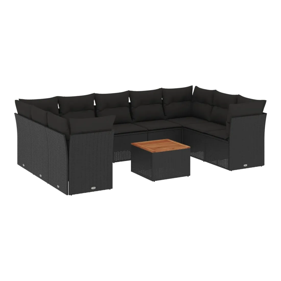 Salon de jardin 10 pcs avec coussins noir résine tressée
