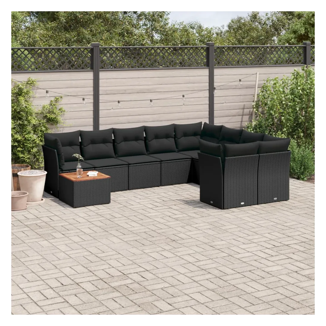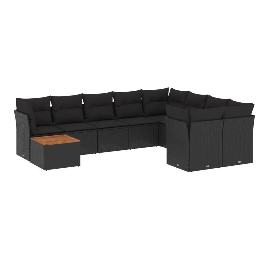 Salon de jardin 10 pcs avec coussins noir résine tressée