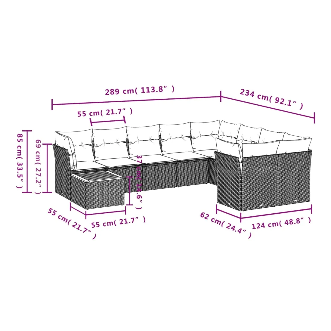 • 9 x coussin d'assise avec housse amovible et lavable