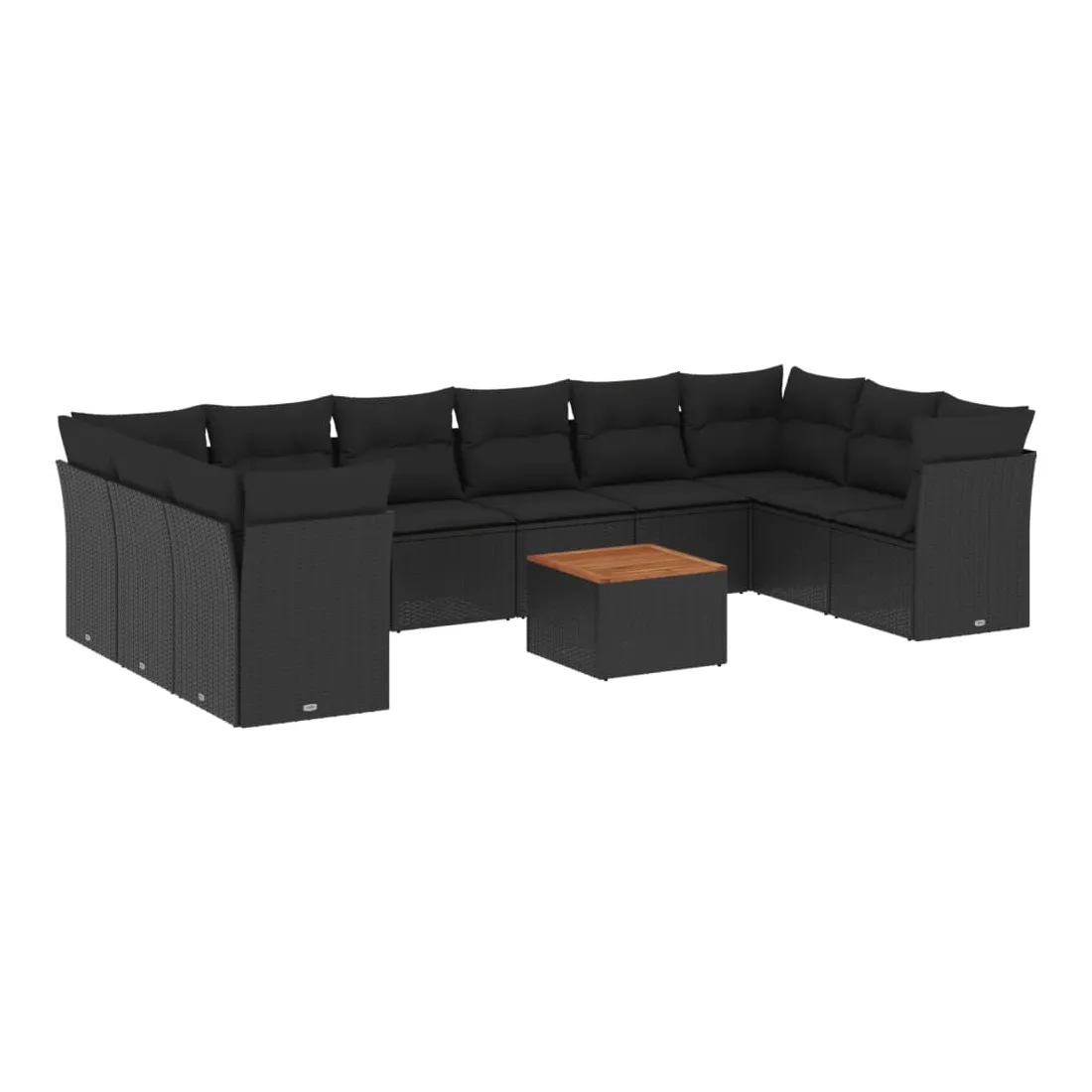 Salon de jardin 11 pcs avec coussins noir résine tressée