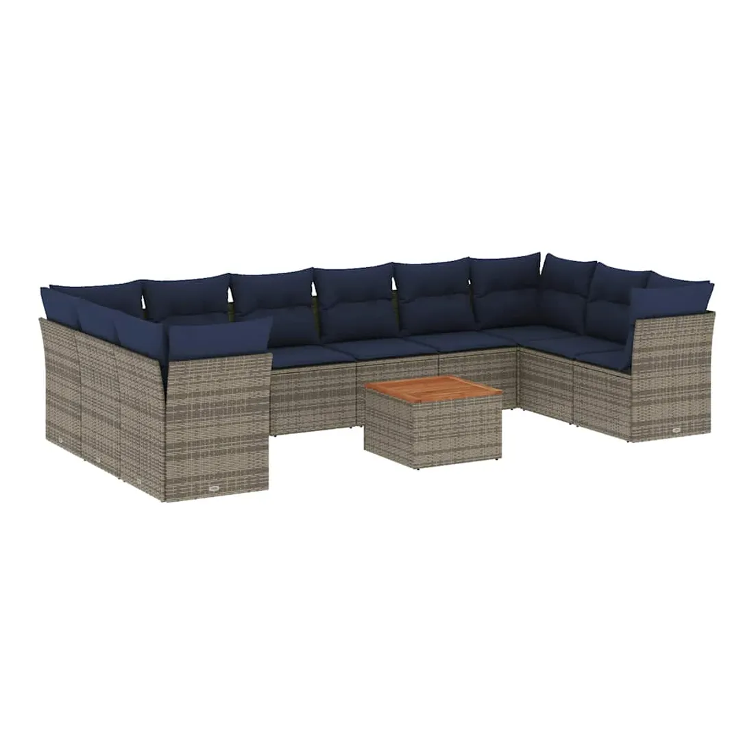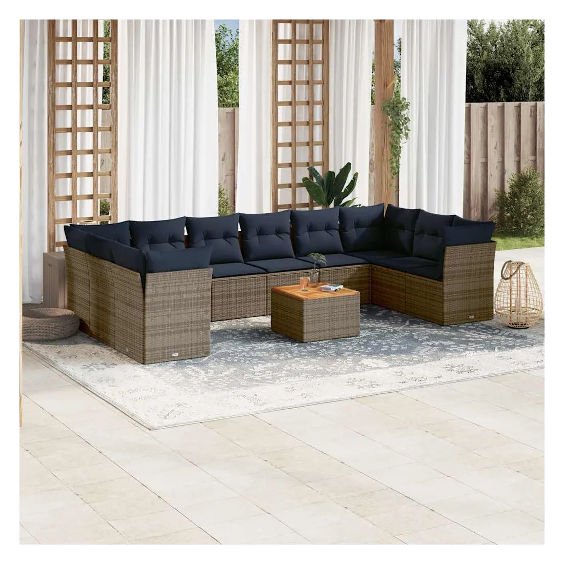 Salon de jardin 11 pcs avec coussins gris résine tressée