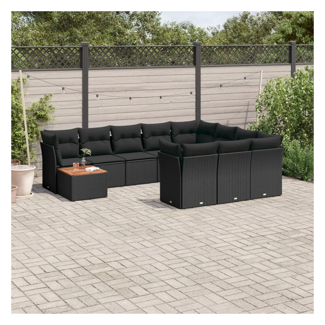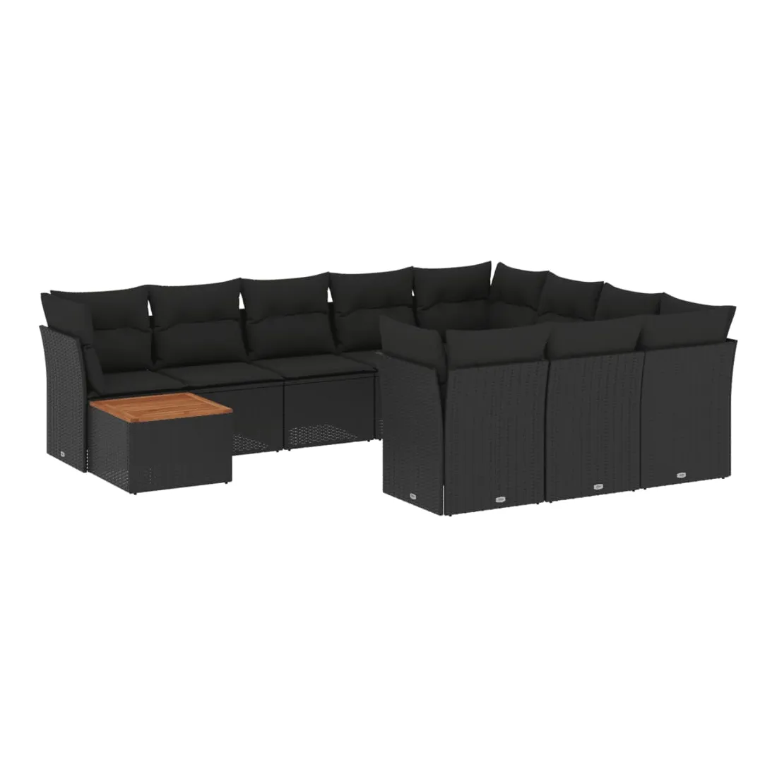 Salon de jardin 11 pcs avec coussins noir résine tressée