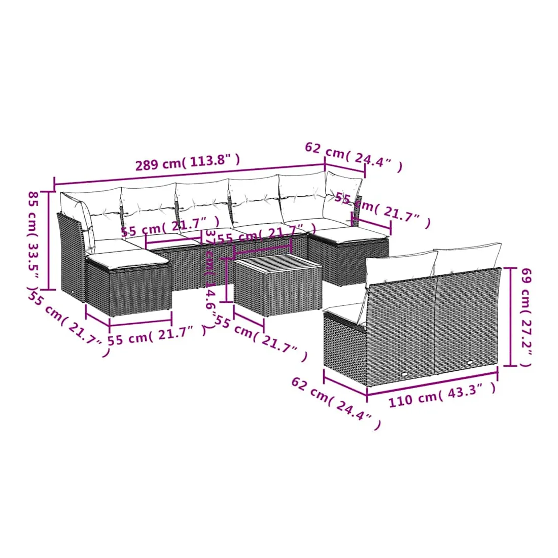 - 9 x coussin d'assise avec housse amovible et lavable