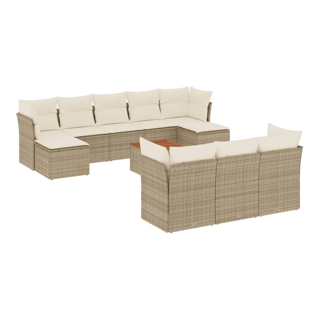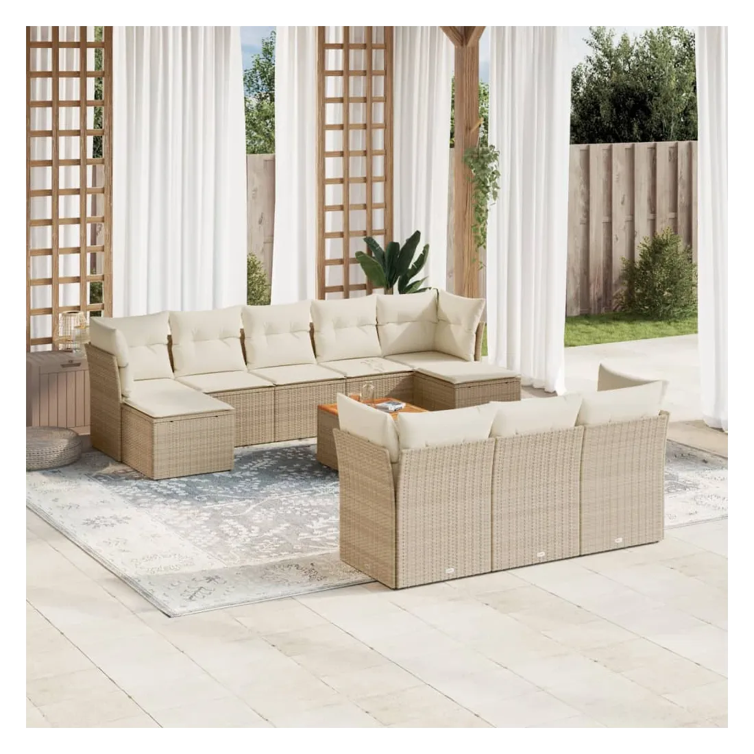 Cet ensemble de canapés de jardin est le complément parfait de votre arrière-cour, terrasse ou patio, offrant un espace confortable et accueillant pour discuter avec la famille et les amis ou simplement se détendre et profiter de l'extérieur. Matériau durable : la résine tressée, également connue sous le nom de poly rotin, est un matériau synthétique solide et nécessitant peu d'entretien qui ressemble au rotin naturel. Il est léger, facile à nettoyer et couramment utilisé pour les meubles d'extérieur en raison de sa durabilité et de ses propriétés de résistance aux intempéries.Fonction de rangement avec sac résistant à l'eau : chaque siège de jardin dispose d'un espace de rangement sous l'assise, complété par un sac résistant à l'eau pour ranger les coussins, les jouets et d'autres objets. Les sacs intérieurs sont dotés d'un couvercle et peuvent être solidement fixés aux sièges à l'aide de bandes auto-agrippantes pour plus de stabilité.Dessus stable et facile à nettoyer : cette table de jardin a un dessus en bois d'acacia robuste, durable et facile à nettoyer avec un chiffon humide.Pouf polyvalent : le tabouret est polyvalent, servant de repose-pieds confortable lorsque vous vous prélassez sur le canapé ou de siège supplémentaire dans votre jardin.Conception modulaire : cet ensemble de meubles d'extérieur a une conception modulaire, ce qui le rend complètement flexible et facile à déplacer, afin que vous puissiez créer un agencement de meubles d'extérieur personnalisé. Bon à savoir :Pour que vos meubles d'extérieur restent beaux, nous vous recommandons de les protéger avec une housse imperméable.