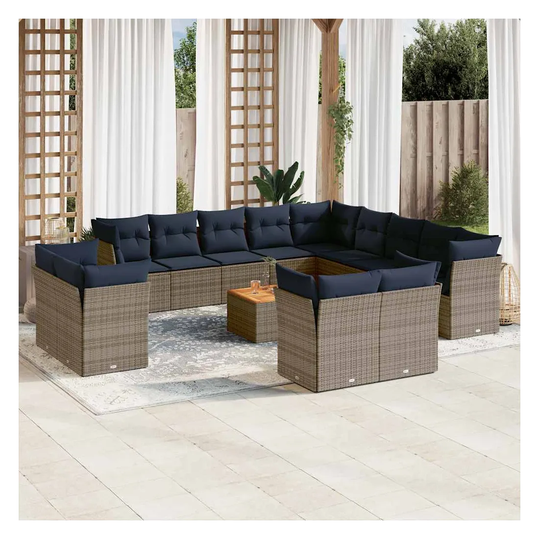 Cet ensemble de canapés de jardin est le complément parfait de votre arrière-cour, terrasse ou patio, offrant un espace confortable et accueillant pour discuter avec la famille et les amis ou simplement se détendre et profiter de l'extérieur. Matériau durable : la résine tressée, également connue sous le nom de poly rotin, est un matériau synthétique solide et nécessitant peu d'entretien qui ressemble au rotin naturel. Il est léger, facile à nettoyer et couramment utilisé pour les meubles d'extérieur en raison de sa durabilité et de ses propriétés de résistance aux intempéries.Fonction de rangement avec sac résistant à l'eau : chaque siège de jardin dispose d'un espace de rangement sous l'assise, complété par un sac résistant à l'eau pour ranger les coussins, les jouets et d'autres objets. Les sacs intérieurs sont dotés d'un couvercle et peuvent être solidement fixés aux sièges à l'aide de bandes auto-agrippantes pour plus de stabilité.Dessus stable et facile à nettoyer : cette table de jardin a un dessus en bois d'acacia robuste, durable et facile à nettoyer avec un chiffon humide.Housse amovible et lavable : ces coussins de siège sont dotés de housses amovibles pour un lavage et un entretien faciles.Conception modulaire : cet ensemble de meubles d'extérieur a une conception modulaire, ce qui le rend complètement flexible et facile à déplacer, afin que vous puissiez créer un agencement de meubles d'extérieur personnalisé. Bon à savoir :Pour que vos meubles d'extérieur restent beaux, nous vous recommandons de les protéger avec une housse imperméable.
