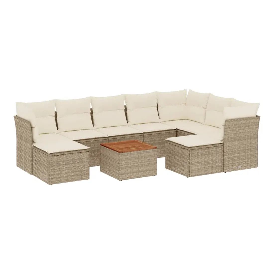 Cet ensemble de canapés de jardin est le complément parfait de votre arrière-cour, terrasse ou patio, offrant un espace confortable et accueillant pour discuter avec la famille et les amis ou simplement se détendre et profiter de l'extérieur. Matériau durable : la résine tressée, également connue sous le nom de poly rotin, est un matériau synthétique solide et nécessitant peu d'entretien qui ressemble au rotin naturel. Il est léger, facile à nettoyer et couramment utilisé pour les meubles d'extérieur en raison de sa durabilité et de ses propriétés de résistance aux intempéries.Fonction de rangement avec sac résistant à l'eau : chaque siège de jardin dispose d'un espace de rangement sous l'assise, complété par un sac résistant à l'eau pour ranger les coussins, les jouets et d'autres objets. Les sacs intérieurs sont dotés d'un couvercle et peuvent être solidement fixés aux sièges à l'aide de bandes auto-agrippantes pour plus de stabilité.Dessus stable et facile à nettoyer : cette table de jardin a un dessus en bois d'acacia robuste, durable et facile à nettoyer avec un chiffon humide.Pouf polyvalent : le tabouret est polyvalent, servant de repose-pieds confortable lorsque vous vous prélassez sur le canapé ou de siège supplémentaire dans votre jardin.Conception modulaire : cet ensemble de meubles d'extérieur a une conception modulaire, ce qui le rend complètement flexible et facile à déplacer, afin que vous puissiez créer un agencement de meubles d'extérieur personnalisé. Bon à savoir :Pour que vos meubles d'extérieur restent beaux, nous vous recommandons de les protéger avec une housse imperméable.