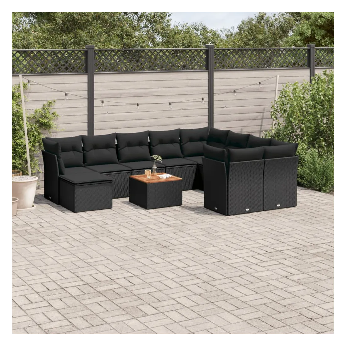 Cet ensemble de canapés de jardin est le complément parfait de votre arrière-cour, terrasse ou patio, offrant un espace confortable et accueillant pour discuter avec la famille et les amis ou simplement se détendre et profiter de l'extérieur. Matériau durable : la résine tressée, également connue sous le nom de poly rotin, est un matériau synthétique solide et nécessitant peu d'entretien qui ressemble au rotin naturel. Il est léger, facile à nettoyer et couramment utilisé pour les meubles d'extérieur en raison de sa durabilité et de ses propriétés de résistance aux intempéries.Fonction de rangement avec sac résistant à l'eau : chaque siège de jardin dispose d'un espace de rangement sous l'assise, complété par un sac résistant à l'eau pour ranger les coussins, les jouets et d'autres objets. Les sacs intérieurs sont dotés d'un couvercle et peuvent être solidement fixés aux sièges à l'aide de bandes auto-agrippantes pour plus de stabilité.Dessus stable et facile à nettoyer : cette table de jardin a un dessus en bois d'acacia robuste, durable et facile à nettoyer avec un chiffon humide.Pouf polyvalent : le tabouret est polyvalent, servant de repose-pieds confortable lorsque vous vous prélassez sur le canapé ou de siège supplémentaire dans votre jardin.Conception modulaire : cet ensemble de meubles d'extérieur a une conception modulaire, ce qui le rend complètement flexible et facile à déplacer, afin que vous puissiez créer un agencement de meubles d'extérieur personnalisé. Bon à savoir :Pour que vos meubles d'extérieur restent beaux, nous vous recommandons de les protéger avec une housse imperméable.