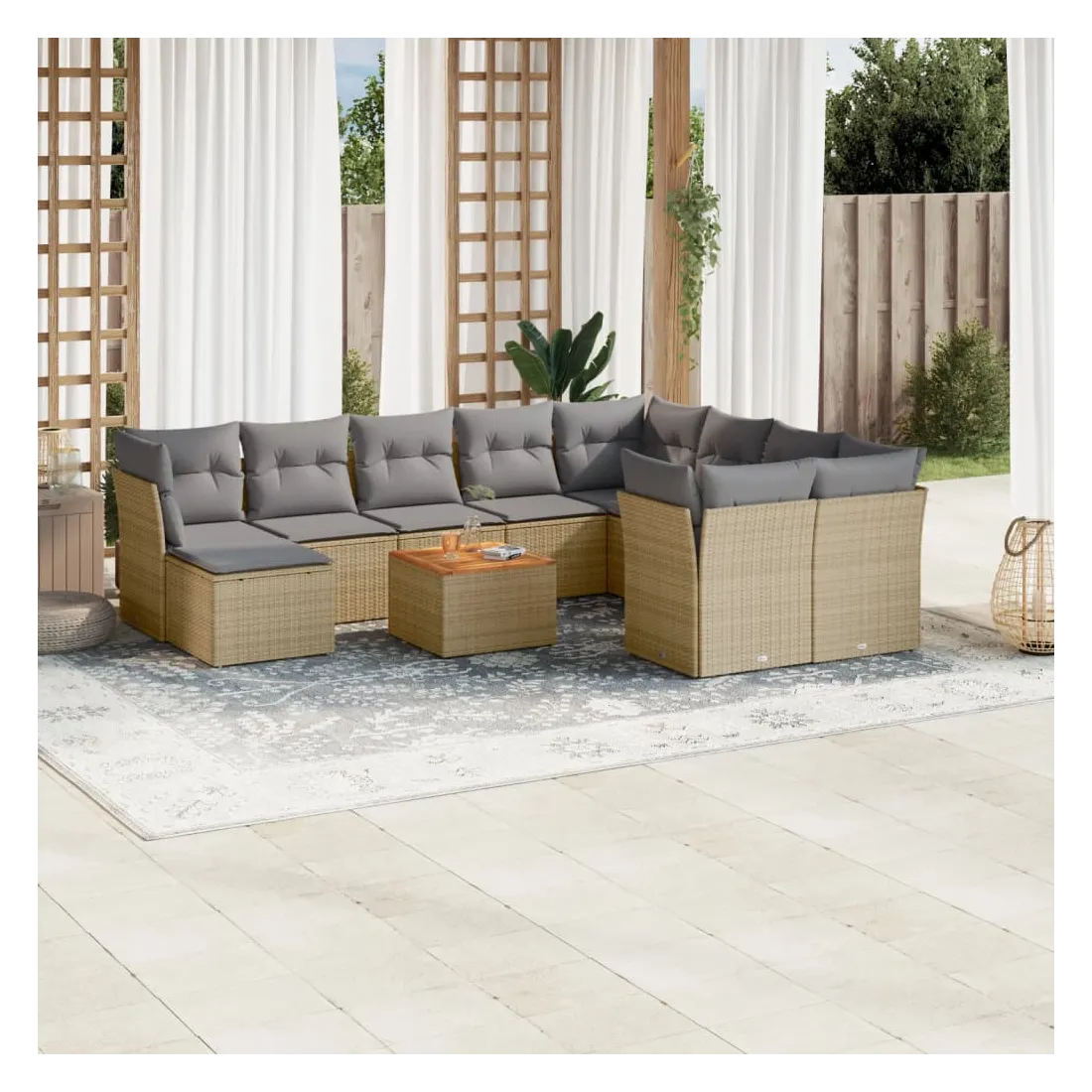 Cet ensemble de canapés de jardin est le complément parfait de votre arrière-cour, terrasse ou patio, offrant un espace confortable et accueillant pour discuter avec la famille et les amis ou simplement se détendre et profiter de l'extérieur. Matériau durable : la résine tressée, également connue sous le nom de poly rotin, est un matériau synthétique solide et nécessitant peu d'entretien qui ressemble au rotin naturel. Il est léger, facile à nettoyer et couramment utilisé pour les meubles d'extérieur en raison de sa durabilité et de ses propriétés de résistance aux intempéries.Fonction de rangement avec sac résistant à l'eau : chaque siège de jardin dispose d'un espace de rangement sous l'assise, complété par un sac résistant à l'eau pour ranger les coussins, les jouets et d'autres objets. Les sacs intérieurs sont dotés d'un couvercle et peuvent être solidement fixés aux sièges à l'aide de bandes auto-agrippantes pour plus de stabilité.Dessus stable et facile à nettoyer : cette table de jardin a un dessus en bois d'acacia robuste, durable et facile à nettoyer avec un chiffon humide.Pouf polyvalent : le tabouret est polyvalent, servant de repose-pieds confortable lorsque vous vous prélassez sur le canapé ou de siège supplémentaire dans votre jardin.Conception modulaire : cet ensemble de meubles d'extérieur a une conception modulaire, ce qui le rend complètement flexible et facile à déplacer, afin que vous puissiez créer un agencement de meubles d'extérieur personnalisé. Bon à savoir :Pour que vos meubles d'extérieur restent beaux, nous vous recommandons de les protéger avec une housse imperméable.