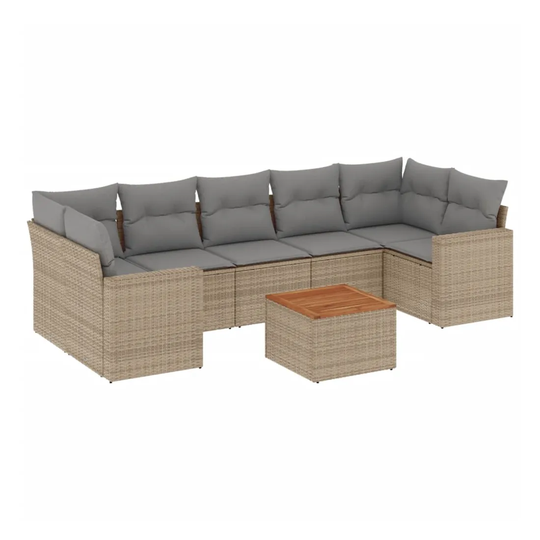Cet ensemble de canapés de jardin est le complément parfait de votre arrière-cour, terrasse ou patio, offrant un espace confortable et accueillant pour discuter avec la famille et les amis ou simplement se détendre et profiter de l'extérieur. Matériau durable : la résine tressée, également connue sous le nom de poly rotin, est un matériau synthétique solide et nécessitant peu d'entretien qui ressemble au rotin naturel. Il est léger, facile à nettoyer et couramment utilisé pour les meubles d'extérieur en raison de sa durabilité et de ses propriétés de résistance aux intempéries.Fonction de rangement avec sac résistant à l'eau : chaque siège de jardin dispose d'un espace de rangement sous l'assise, complété par un sac résistant à l'eau pour ranger les coussins, les jouets et d'autres objets. Les sacs intérieurs sont dotés d'un couvercle et peuvent être solidement fixés aux sièges à l'aide de bandes auto-agrippantes pour plus de stabilité.Dessus stable et facile à nettoyer : cette table de jardin a un dessus en bois d'acacia robuste, durable et facile à nettoyer avec un chiffon humide.Housse amovible et lavable : ces coussins de siège sont dotés de housses amovibles pour un lavage et un entretien faciles.Conception modulaire : cet ensemble de meubles d'extérieur a une conception modulaire, ce qui le rend complètement flexible et facile à déplacer, afin que vous puissiez créer un agencement de meubles d'extérieur personnalisé. Bon à savoir :Pour que vos meubles d'extérieur restent beaux, nous vous recommandons de les protéger avec une housse imperméable.