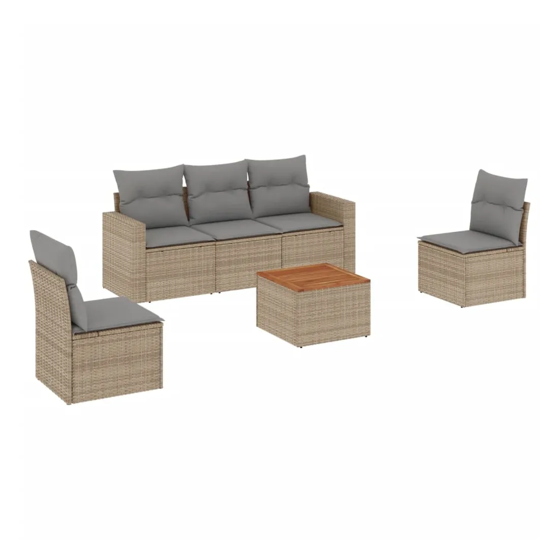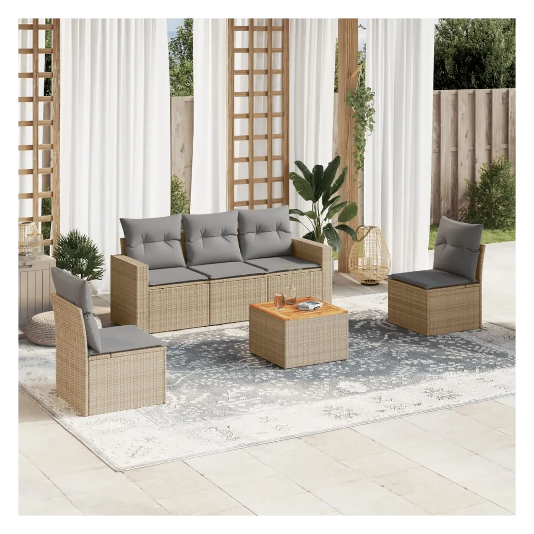 Cet ensemble de canapés de jardin est le complément parfait de votre arrière-cour, terrasse ou patio, offrant un espace confortable et accueillant pour discuter avec la famille et les amis ou simplement se détendre et profiter de l'extérieur. Matériau durable : la résine tressée, également connue sous le nom de poly rotin, est un matériau synthétique solide et nécessitant peu d'entretien qui ressemble au rotin naturel. Il est léger, facile à nettoyer et couramment utilisé pour les meubles d'extérieur en raison de sa durabilité et de ses propriétés de résistance aux intempéries.Fonction de rangement avec sac résistant à l'eau : chaque siège de jardin dispose d'un espace de rangement sous l'assise, complété par un sac résistant à l'eau pour ranger les coussins, les jouets et d'autres objets. Les sacs intérieurs sont dotés d'un couvercle et peuvent être solidement fixés aux sièges à l'aide de bandes auto-agrippantes pour plus de stabilité.Dessus stable et facile à nettoyer : cette table de jardin a un dessus en bois d'acacia robuste, durable et facile à nettoyer avec un chiffon humide.Housse amovible et lavable : ces coussins de siège sont dotés de housses amovibles pour un lavage et un entretien faciles.Conception modulaire : cet ensemble de meubles d'extérieur a une conception modulaire, ce qui le rend complètement flexible et facile à déplacer, afin que vous puissiez créer un agencement de meubles d'extérieur personnalisé. Bon à savoir :Pour que vos meubles d'extérieur restent beaux, nous vous recommandons de les protéger avec une housse imperméable.