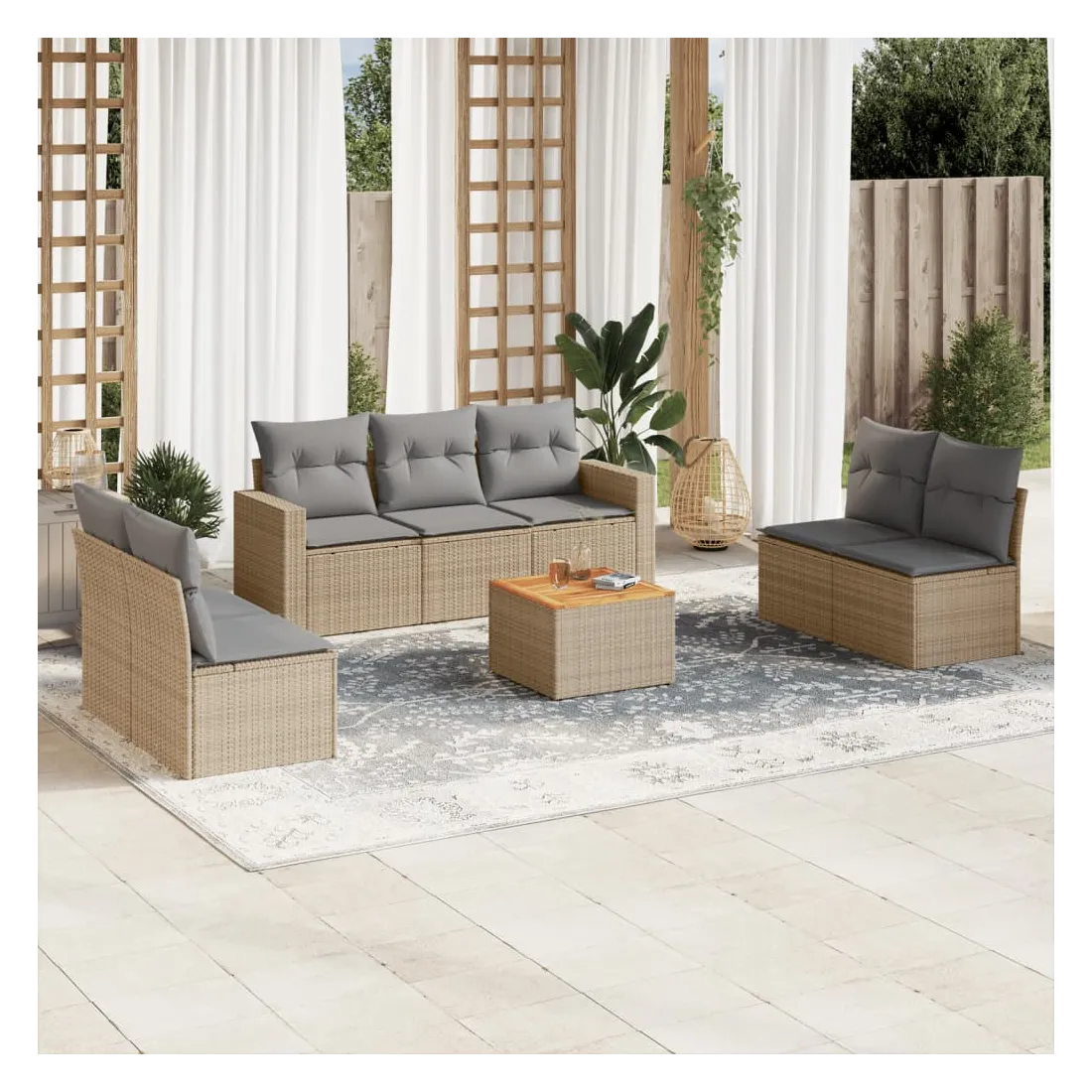 Cet ensemble de canapés de jardin est le complément parfait de votre arrière-cour, terrasse ou patio, offrant un espace confortable et accueillant pour discuter avec la famille et les amis ou simplement se détendre et profiter de l'extérieur. Matériau durable : la résine tressée, également connue sous le nom de poly rotin, est un matériau synthétique solide et nécessitant peu d'entretien qui ressemble au rotin naturel. Il est léger, facile à nettoyer et couramment utilisé pour les meubles d'extérieur en raison de sa durabilité et de ses propriétés de résistance aux intempéries.Fonction de rangement avec sac résistant à l'eau : chaque siège de jardin dispose d'un espace de rangement sous l'assise, complété par un sac résistant à l'eau pour ranger les coussins, les jouets et d'autres objets. Les sacs intérieurs sont dotés d'un couvercle et peuvent être solidement fixés aux sièges à l'aide de bandes auto-agrippantes pour plus de stabilité.Dessus stable et facile à nettoyer : cette table de jardin a un dessus en bois d'acacia robuste, durable et facile à nettoyer avec un chiffon humide.Housse amovible et lavable : ces coussins de siège sont dotés de housses amovibles pour un lavage et un entretien faciles.Conception modulaire : cet ensemble de meubles d'extérieur a une conception modulaire, ce qui le rend complètement flexible et facile à déplacer, afin que vous puissiez créer un agencement de meubles d'extérieur personnalisé. Bon à savoir :Pour que vos meubles d'extérieur restent beaux, nous vous recommandons de les protéger avec une housse imperméable.