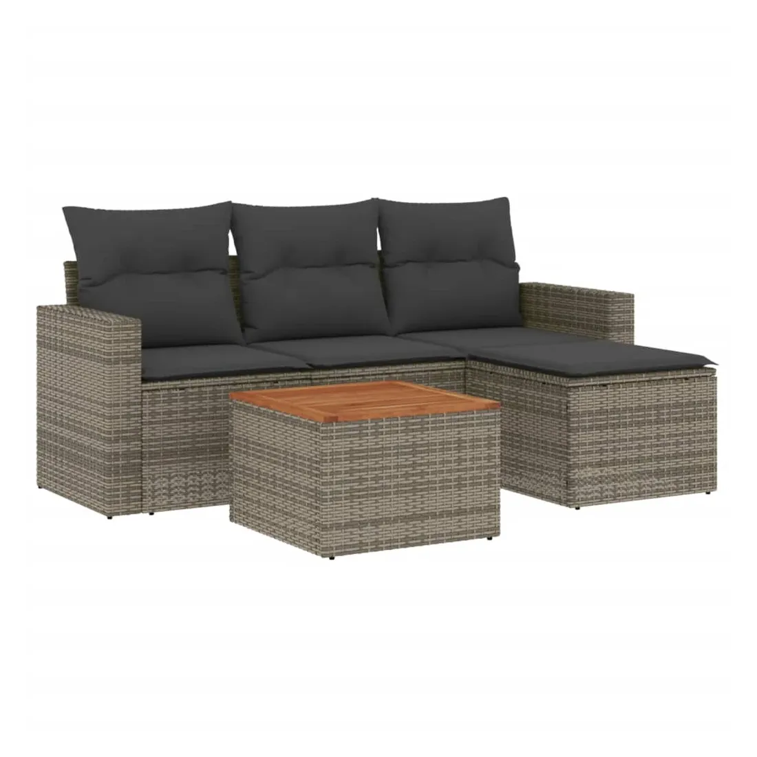 Cet ensemble de canapés de jardin est le complément parfait de votre arrière-cour, terrasse ou patio, offrant un espace confortable et accueillant pour discuter avec la famille et les amis ou simplement se détendre et profiter de l'extérieur. Matériau durable : la résine tressée, également connue sous le nom de poly rotin, est un matériau synthétique solide et nécessitant peu d'entretien qui ressemble au rotin naturel. Il est léger, facile à nettoyer et couramment utilisé pour les meubles d'extérieur en raison de sa durabilité et de ses propriétés de résistance aux intempéries.Fonction de rangement avec sac résistant à l'eau : chaque siège de jardin dispose d'un espace de rangement sous l'assise, complété par un sac résistant à l'eau pour ranger les coussins, les jouets et d'autres objets. Les sacs intérieurs sont dotés d'un couvercle et peuvent être solidement fixés aux sièges à l'aide de bandes auto-agrippantes pour plus de stabilité.Dessus stable et facile à nettoyer : cette table de jardin a un dessus en bois d'acacia robuste, durable et facile à nettoyer avec un chiffon humide.Pouf polyvalent : le tabouret est polyvalent, servant de repose-pieds confortable lorsque vous vous prélassez sur le canapé ou de siège supplémentaire dans votre jardin.Conception modulaire : cet ensemble de meubles d'extérieur a une conception modulaire, ce qui le rend complètement flexible et facile à déplacer, afin que vous puissiez créer un agencement de meubles d'extérieur personnalisé. Bon à savoir :Pour que vos meubles d'extérieur restent beaux, nous vous recommandons de les protéger avec une housse imperméable.