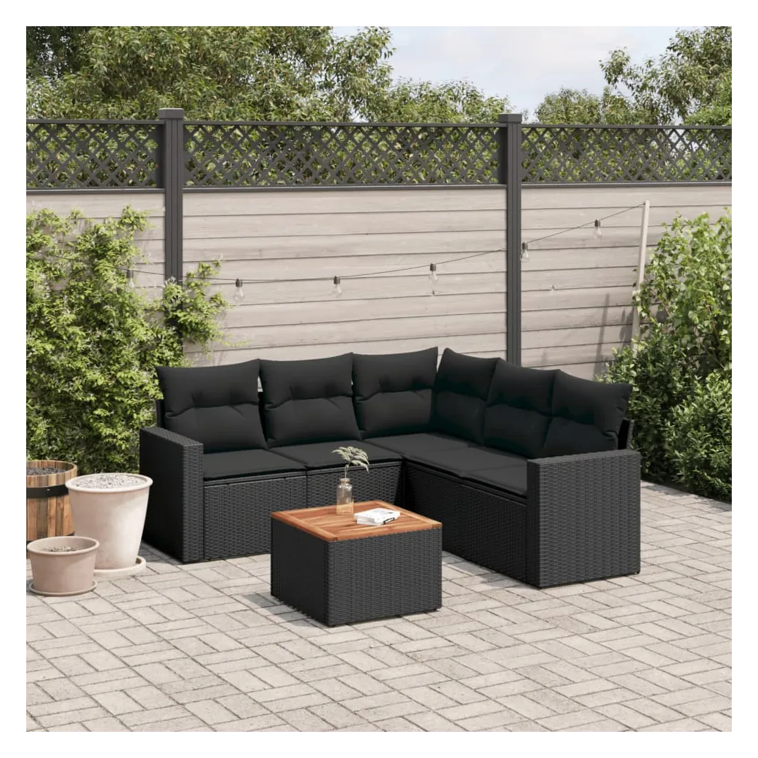 Salon de jardin 6 pcs avec coussins noir résine tressée
