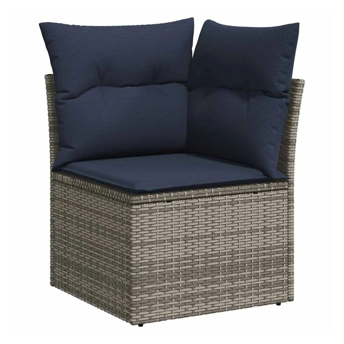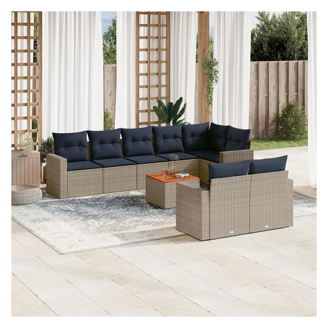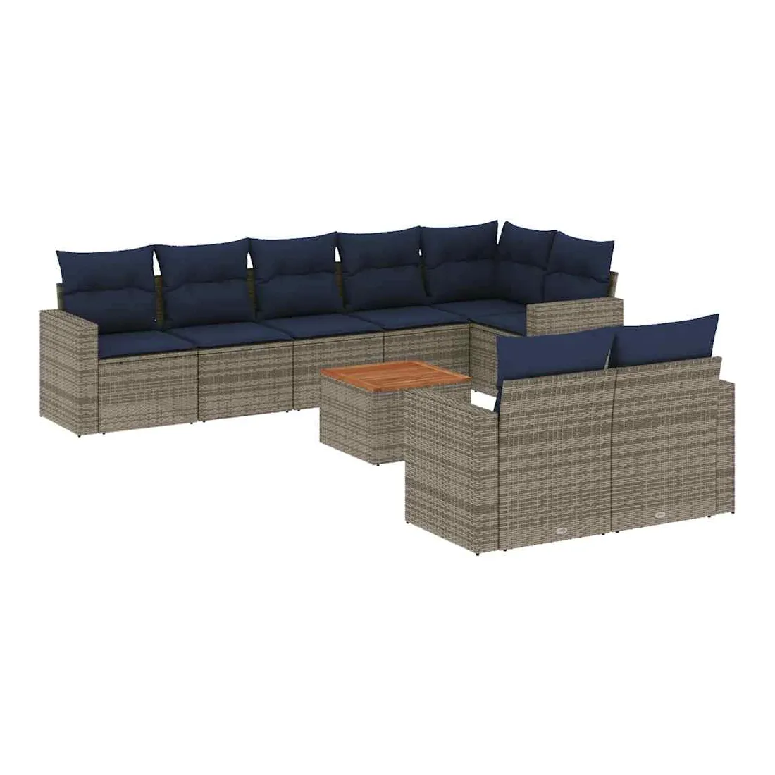 Salon de jardin 9 pcs avec coussins gris résine tressée