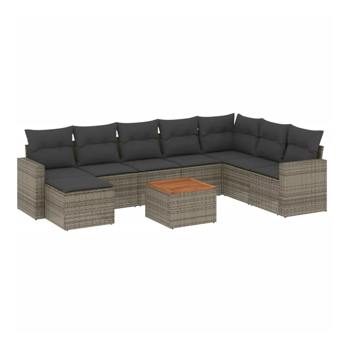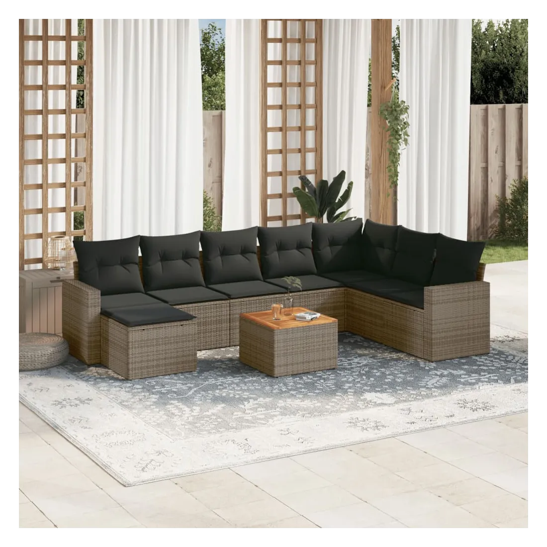 Cet ensemble de canapés de jardin est le complément parfait de votre arrière-cour, terrasse ou patio, offrant un espace confortable et accueillant pour discuter avec la famille et les amis ou simplement se détendre et profiter de l'extérieur. Matériau durable : la résine tressée, également connue sous le nom de poly rotin, est un matériau synthétique solide et nécessitant peu d'entretien qui ressemble au rotin naturel. Il est léger, facile à nettoyer et couramment utilisé pour les meubles d'extérieur en raison de sa durabilité et de ses propriétés de résistance aux intempéries.Fonction de rangement avec sac résistant à l'eau : chaque siège de jardin dispose d'un espace de rangement sous l'assise, complété par un sac résistant à l'eau pour ranger les coussins, les jouets et d'autres objets. Les sacs intérieurs sont dotés d'un couvercle et peuvent être solidement fixés aux sièges à l'aide de bandes auto-agrippantes pour plus de stabilité.Dessus stable et facile à nettoyer : cette table de jardin a un dessus en bois d'acacia robuste, durable et facile à nettoyer avec un chiffon humide.Pouf polyvalent : le tabouret est polyvalent, servant de repose-pieds confortable lorsque vous vous prélassez sur le canapé ou de siège supplémentaire dans votre jardin.Conception modulaire : cet ensemble de meubles d'extérieur a une conception modulaire, ce qui le rend complètement flexible et facile à déplacer, afin que vous puissiez créer un agencement de meubles d'extérieur personnalisé. Bon à savoir :Pour que vos meubles d'extérieur restent beaux, nous vous recommandons de les protéger avec une housse imperméable.