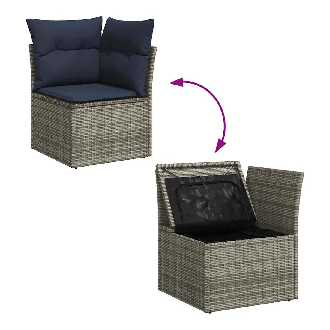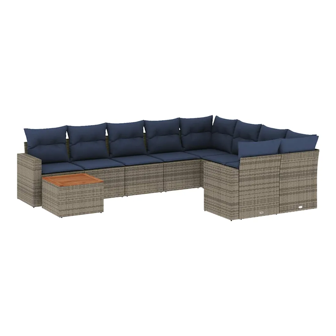 Salon de jardin 10 pcs avec coussins gris résine tressée