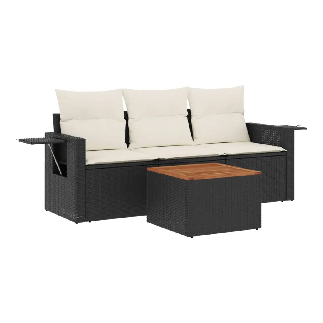 Cet ensemble de canapés de jardin est le complément parfait de votre arrière-cour, terrasse ou patio, offrant un espace confortable et accueillant pour discuter avec la famille et les amis ou simplement se détendre et profiter de l'extérieur. Matériau durable : la résine tressée, également connue sous le nom de poly rotin, est un matériau synthétique solide et nécessitant peu d'entretien qui ressemble au rotin naturel. Il est léger, facile à nettoyer et couramment utilisé pour les meubles d'extérieur en raison de sa durabilité et de ses propriétés de résistance aux intempéries.Fonction de rangement avec sac résistant à l'eau : chaque siège de jardin dispose d'un espace de rangement sous l'assise, complété par un sac résistant à l'eau pour ranger les coussins, les jouets et d'autres objets. Les sacs intérieurs sont dotés d'un couvercle et peuvent être solidement fixés aux sièges à l'aide de bandes auto-agrippantes pour plus de stabilité.Dessus stable et facile à nettoyer : cette table de jardin a un dessus en bois d'acacia robuste, durable et facile à nettoyer avec un chiffon humide.Table d'appoint pratique : ce mobilier d'extérieur comprend des tables d'appoint pliables avec un ressort à gaz sur les accoudoirs, offrant des endroits pratiques pour garder vos essentiels à portée de main.Conception modulaire : cet ensemble de meubles d'extérieur a une conception modulaire, ce qui le rend complètement flexible et facile à déplacer, afin que vous puissiez créer un agencement de meubles d'extérieur personnalisé. Bon à savoir :Pour que vos meubles d'extérieur restent beaux, nous vous recommandons de les protéger avec une housse imperméable.