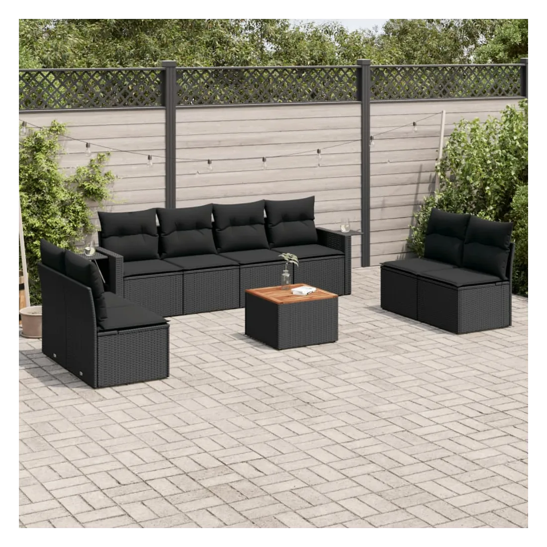 Cet ensemble de canapés de jardin est le complément parfait de votre arrière-cour, terrasse ou patio, offrant un espace confortable et accueillant pour discuter avec la famille et les amis ou simplement se détendre et profiter de l'extérieur. Matériau durable : la résine tressée, également connue sous le nom de poly rotin, est un matériau synthétique solide et nécessitant peu d'entretien qui ressemble au rotin naturel. Il est léger, facile à nettoyer et couramment utilisé pour les meubles d'extérieur en raison de sa durabilité et de ses propriétés de résistance aux intempéries.Fonction de rangement avec sac résistant à l'eau : chaque siège de jardin dispose d'un espace de rangement sous l'assise, complété par un sac résistant à l'eau pour ranger les coussins, les jouets et d'autres objets. Les sacs intérieurs sont dotés d'un couvercle et peuvent être solidement fixés aux sièges à l'aide de bandes auto-agrippantes pour plus de stabilité.Dessus stable et facile à nettoyer : cette table de jardin a un dessus en bois d'acacia robuste, durable et facile à nettoyer avec un chiffon humide.Table d'appoint pratique : ce mobilier d'extérieur comprend des tables d'appoint pliables avec un ressort à gaz sur les accoudoirs, offrant des endroits pratiques pour garder vos essentiels à portée de main.Conception modulaire : cet ensemble de meubles d'extérieur a une conception modulaire, ce qui le rend complètement flexible et facile à déplacer, afin que vous puissiez créer un agencement de meubles d'extérieur personnalisé. Bon à savoir :Pour que vos meubles d'extérieur restent beaux, nous vous recommandons de les protéger avec une housse imperméable.