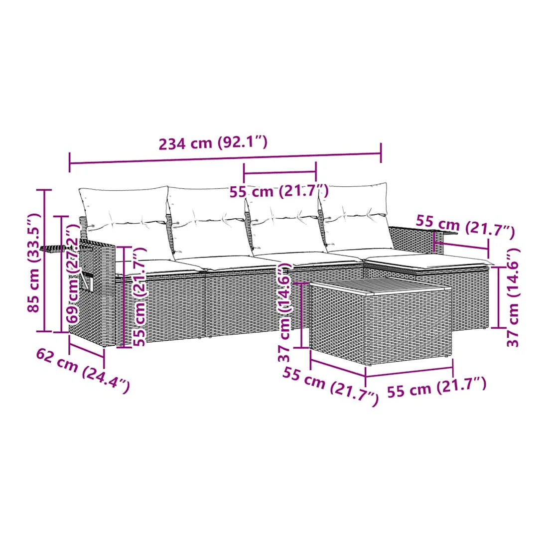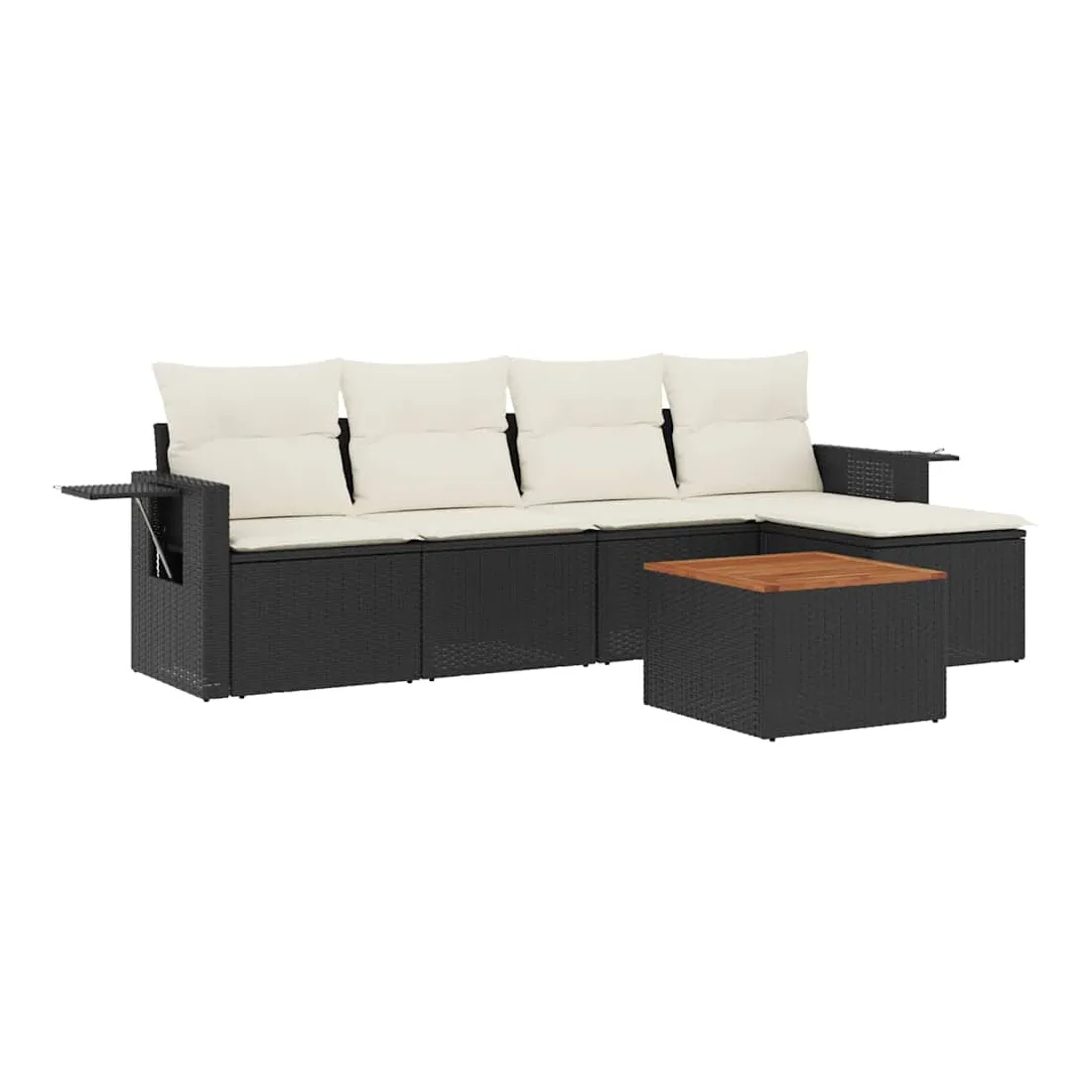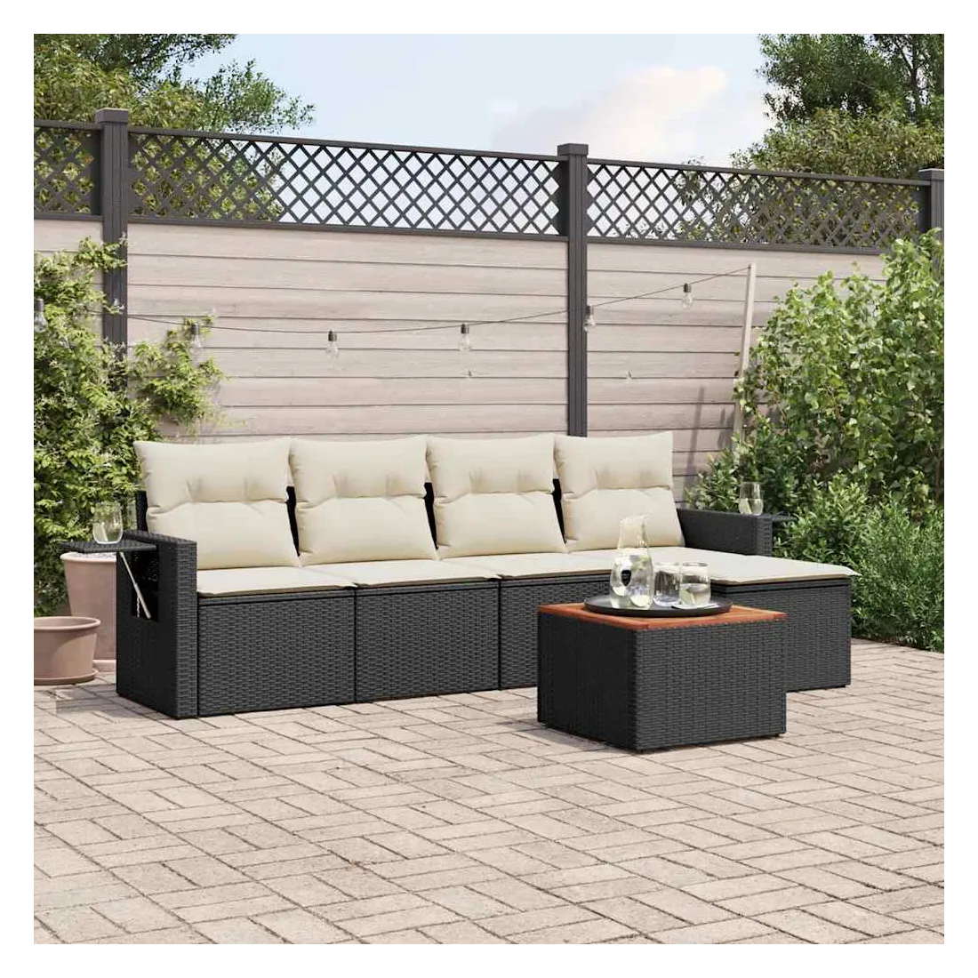 Cet ensemble de canapés de jardin est le complément parfait de votre arrière-cour, terrasse ou patio, offrant un espace confortable et accueillant pour discuter avec la famille et les amis ou simplement se détendre et profiter de l'extérieur. Matériau durable : la résine tressée, également connue sous le nom de poly rotin, est un matériau synthétique solide et nécessitant peu d'entretien qui ressemble au rotin naturel. Il est léger, facile à nettoyer et couramment utilisé pour les meubles d'extérieur en raison de sa durabilité et de ses propriétés de résistance aux intempéries.Fonction de rangement avec sac résistant à l'eau : chaque siège de jardin dispose d'un espace de rangement sous l'assise, complété par un sac résistant à l'eau pour ranger les coussins, les jouets et d'autres objets. Les sacs intérieurs sont dotés d'un couvercle et peuvent être solidement fixés aux sièges à l'aide de bandes auto-agrippantes pour plus de stabilité.Dessus stable et facile à nettoyer : cette table de jardin a un dessus en bois d'acacia robuste, durable et facile à nettoyer avec un chiffon humide.Table d'appoint pratique : ce mobilier d'extérieur comprend des tables d'appoint pliables avec un ressort à gaz sur les accoudoirs, offrant des endroits pratiques pour garder vos essentiels à portée de main.Conception modulaire : cet ensemble de meubles d'extérieur a une conception modulaire, ce qui le rend complètement flexible et facile à déplacer, afin que vous puissiez créer un agencement de meubles d'extérieur personnalisé. Bon à savoir :Pour que vos meubles d'extérieur restent beaux, nous vous recommandons de les protéger avec une housse imperméable.