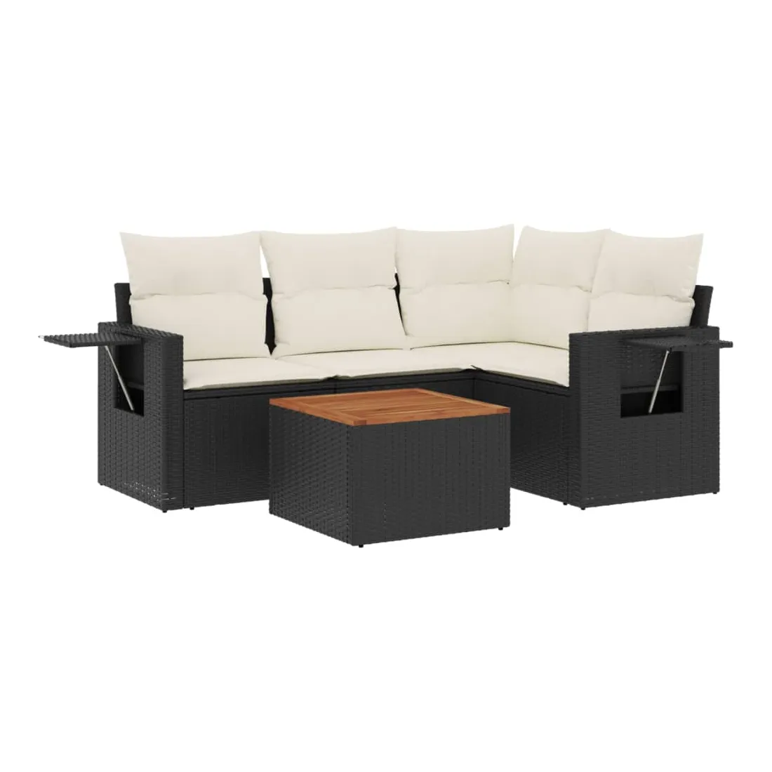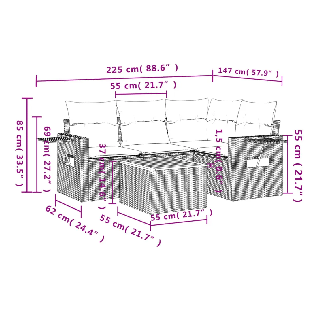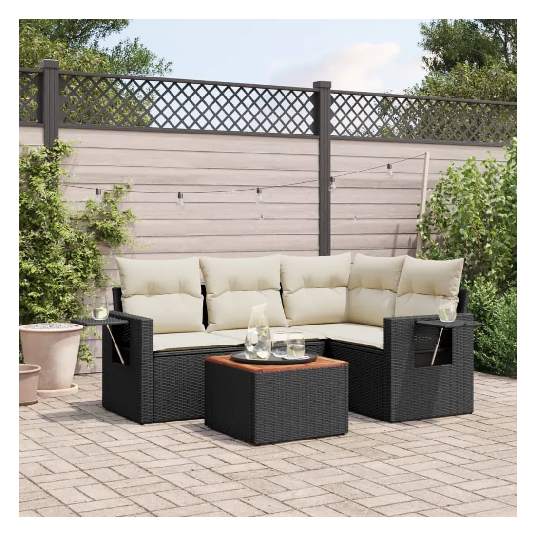 Cet ensemble de canapés de jardin est le complément parfait de votre arrière-cour, terrasse ou patio, offrant un espace confortable et accueillant pour discuter avec la famille et les amis ou simplement se détendre et profiter de l'extérieur. Matériau durable : la résine tressée, également connue sous le nom de poly rotin, est un matériau synthétique solide et nécessitant peu d'entretien qui ressemble au rotin naturel. Il est léger, facile à nettoyer et couramment utilisé pour les meubles d'extérieur en raison de sa durabilité et de ses propriétés de résistance aux intempéries.Fonction de rangement avec sac résistant à l'eau : chaque siège de jardin dispose d'un espace de rangement sous l'assise, complété par un sac résistant à l'eau pour ranger les coussins, les jouets et d'autres objets. Les sacs intérieurs sont dotés d'un couvercle et peuvent être solidement fixés aux sièges à l'aide de bandes auto-agrippantes pour plus de stabilité.Dessus stable et facile à nettoyer : cette table de jardin a un dessus en bois d'acacia robuste, durable et facile à nettoyer avec un chiffon humide.Table d'appoint pratique : ce mobilier d'extérieur comprend des tables d'appoint pliables avec un ressort à gaz sur les accoudoirs, offrant des endroits pratiques pour garder vos essentiels à portée de main.Conception modulaire : cet ensemble de meubles d'extérieur a une conception modulaire, ce qui le rend complètement flexible et facile à déplacer, afin que vous puissiez créer un agencement de meubles d'extérieur personnalisé. Bon à savoir :Pour que vos meubles d'extérieur restent beaux, nous vous recommandons de les protéger avec une housse imperméable.
