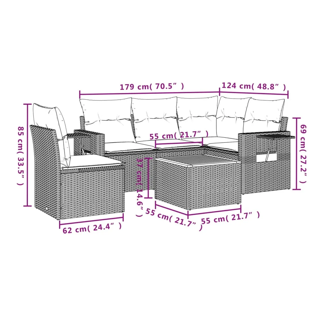 Salon de jardin 6 pcs avec coussins noir résine tressée