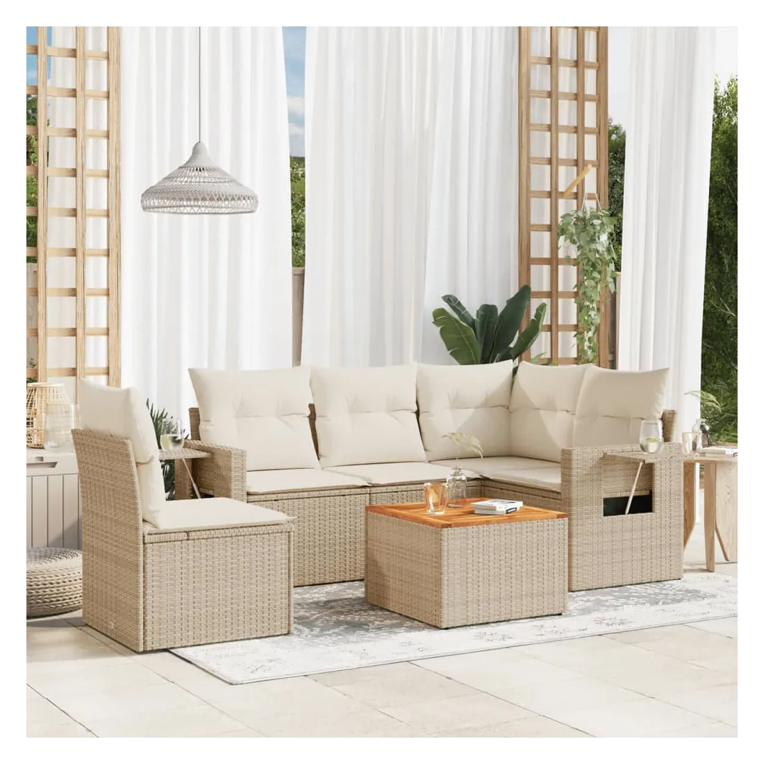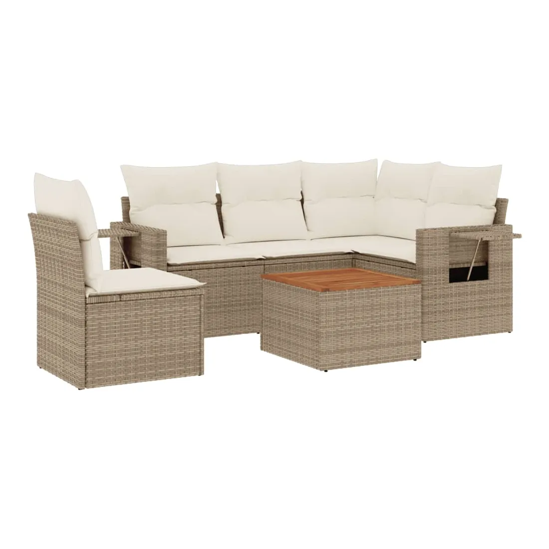 Salon de jardin avec coussins 6 pcs beige résine tressée