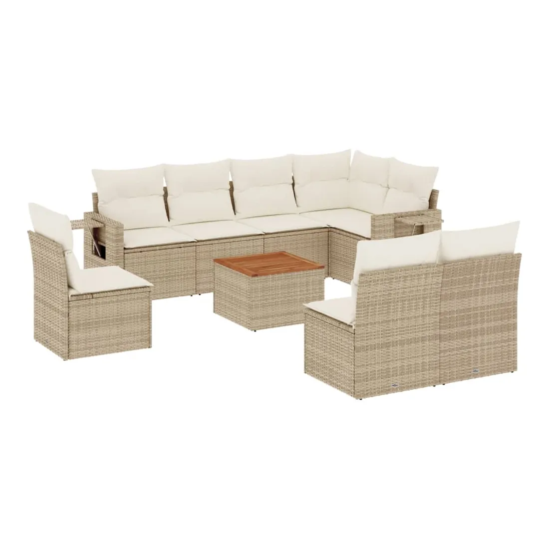 Cet ensemble de canapés de jardin est le complément parfait de votre arrière-cour, terrasse ou patio, offrant un espace confortable et accueillant pour discuter avec la famille et les amis ou simplement se détendre et profiter de l'extérieur. Matériau durable : la résine tressée, également connue sous le nom de poly rotin, est un matériau synthétique solide et nécessitant peu d'entretien qui ressemble au rotin naturel. Il est léger, facile à nettoyer et couramment utilisé pour les meubles d'extérieur en raison de sa durabilité et de ses propriétés de résistance aux intempéries.Fonction de rangement avec sac résistant à l'eau : chaque siège de jardin dispose d'un espace de rangement sous l'assise, complété par un sac résistant à l'eau pour ranger les coussins, les jouets et d'autres objets. Les sacs intérieurs sont dotés d'un couvercle et peuvent être solidement fixés aux sièges à l'aide de bandes auto-agrippantes pour plus de stabilité.Dessus stable et facile à nettoyer : cette table de jardin a un dessus en bois d'acacia robuste, durable et facile à nettoyer avec un chiffon humide.Table d'appoint pratique : ce mobilier d'extérieur comprend des tables d'appoint pliables avec un ressort à gaz sur les accoudoirs, offrant des endroits pratiques pour garder vos essentiels à portée de main.Conception modulaire : cet ensemble de meubles d'extérieur a une conception modulaire, ce qui le rend complètement flexible et facile à déplacer, afin que vous puissiez créer un agencement de meubles d'extérieur personnalisé. Bon à savoir :Pour que vos meubles d'extérieur restent beaux, nous vous recommandons de les protéger avec une housse imperméable.