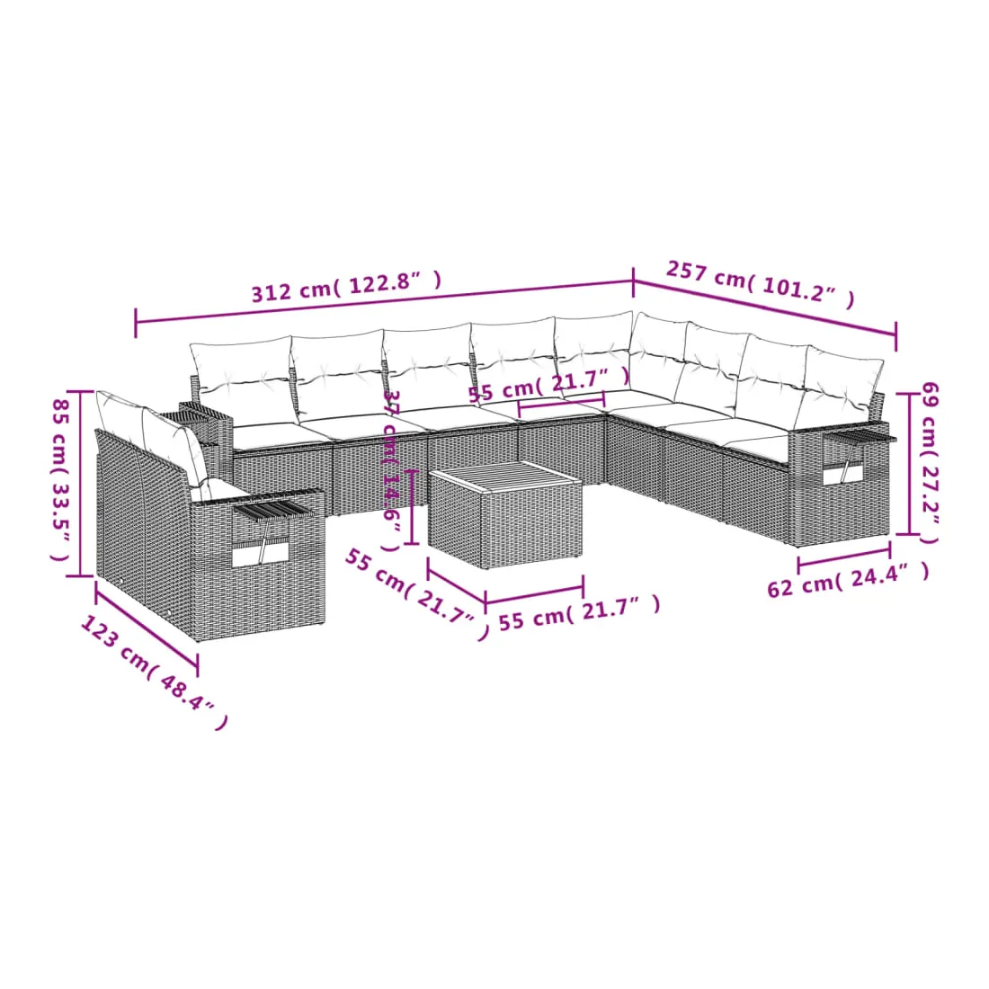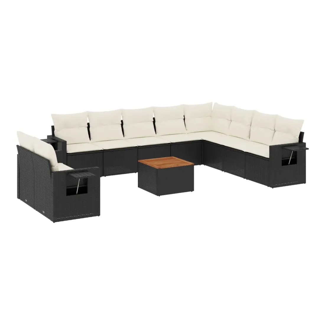Cet ensemble de canapés de jardin est le complément parfait de votre arrière-cour, terrasse ou patio, offrant un espace confortable et accueillant pour discuter avec la famille et les amis ou simplement se détendre et profiter de l'extérieur. Matériau durable : la résine tressée, également connue sous le nom de poly rotin, est un matériau synthétique solide et nécessitant peu d'entretien qui ressemble au rotin naturel. Il est léger, facile à nettoyer et couramment utilisé pour les meubles d'extérieur en raison de sa durabilité et de ses propriétés de résistance aux intempéries.Fonction de rangement avec sac résistant à l'eau : chaque siège de jardin dispose d'un espace de rangement sous l'assise, complété par un sac résistant à l'eau pour ranger les coussins, les jouets et d'autres objets. Les sacs intérieurs sont dotés d'un couvercle et peuvent être solidement fixés aux sièges à l'aide de bandes auto-agrippantes pour plus de stabilité.Dessus stable et facile à nettoyer : cette table de jardin a un dessus en bois d'acacia robuste, durable et facile à nettoyer avec un chiffon humide.Table d'appoint pratique : ce mobilier d'extérieur comprend des tables d'appoint pliables avec un ressort à gaz sur les accoudoirs, offrant des endroits pratiques pour garder vos essentiels à portée de main.Conception modulaire : cet ensemble de meubles d'extérieur a une conception modulaire, ce qui le rend complètement flexible et facile à déplacer, afin que vous puissiez créer un agencement de meubles d'extérieur personnalisé. Bon à savoir :Pour que vos meubles d'extérieur restent beaux, nous vous recommandons de les protéger avec une housse imperméable.