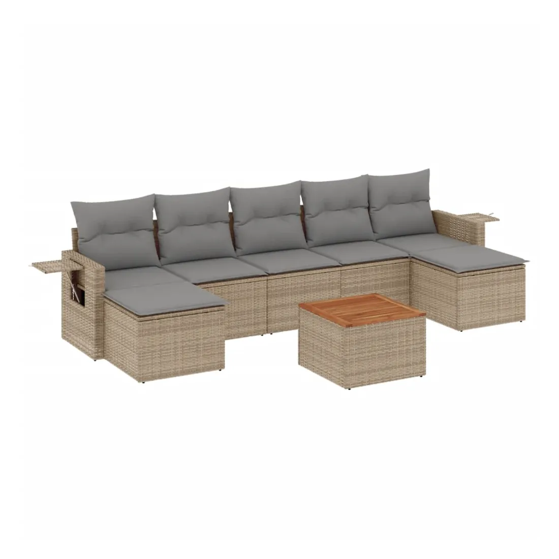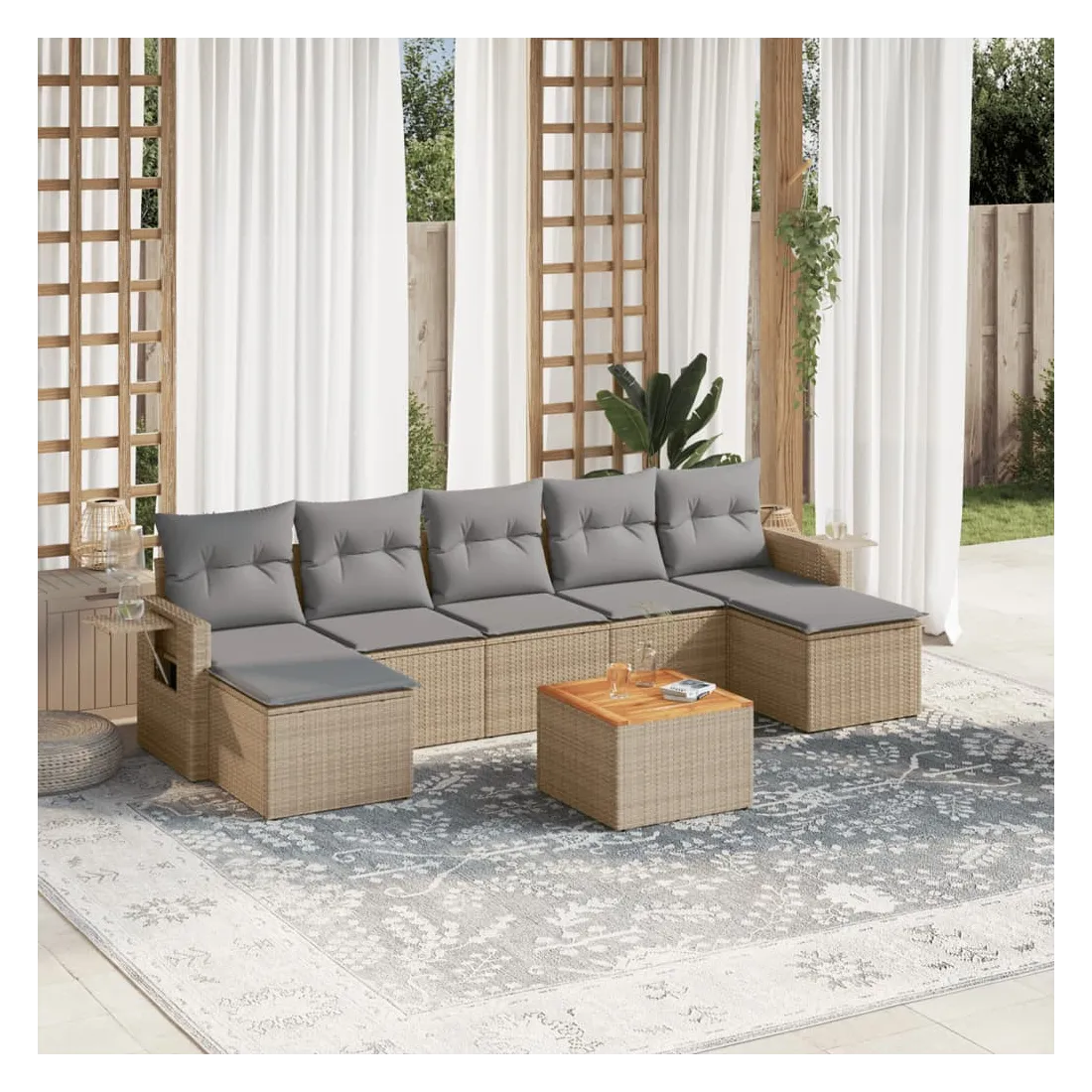 Cet ensemble de canapés de jardin est le complément parfait de votre arrière-cour, terrasse ou patio, offrant un espace confortable et accueillant pour discuter avec la famille et les amis ou simplement se détendre et profiter de l'extérieur. Matériau durable : la résine tressée, également connue sous le nom de poly rotin, est un matériau synthétique solide et nécessitant peu d'entretien qui ressemble au rotin naturel. Il est léger, facile à nettoyer et couramment utilisé pour les meubles d'extérieur en raison de sa durabilité et de ses propriétés de résistance aux intempéries.Fonction de rangement avec sac résistant à l'eau : chaque siège de jardin dispose d'un espace de rangement sous l'assise, complété par un sac résistant à l'eau pour ranger les coussins, les jouets et d'autres objets. Les sacs intérieurs sont dotés d'un couvercle et peuvent être solidement fixés aux sièges à l'aide de bandes auto-agrippantes pour plus de stabilité.Dessus stable et facile à nettoyer : cette table de jardin a un dessus en bois d'acacia robuste, durable et facile à nettoyer avec un chiffon humide.Table d'appoint pratique : ce mobilier d'extérieur comprend des tables d'appoint pliables avec un ressort à gaz sur les accoudoirs, offrant des endroits pratiques pour garder vos essentiels à portée de main.Conception modulaire : cet ensemble de meubles d'extérieur a une conception modulaire, ce qui le rend complètement flexible et facile à déplacer, afin que vous puissiez créer un agencement de meubles d'extérieur personnalisé. Bon à savoir :Pour que vos meubles d'extérieur restent beaux, nous vous recommandons de les protéger avec une housse imperméable.