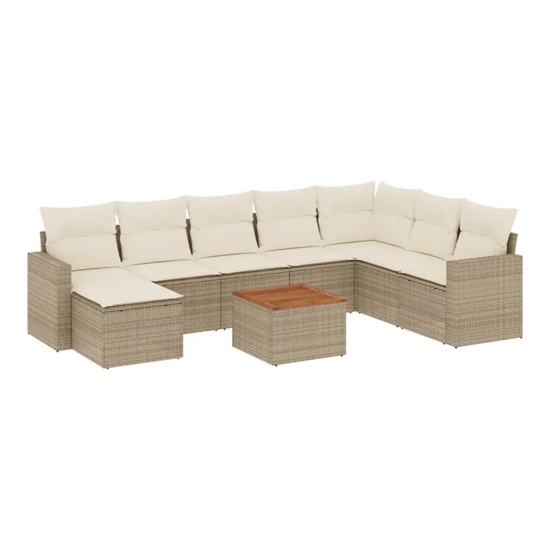 Cet ensemble de canapés de jardin est le complément parfait de votre arrière-cour, terrasse ou patio, offrant un espace confortable et accueillant pour discuter avec la famille et les amis ou simplement se détendre et profiter de l'extérieur. Matériau durable : la résine tressée, également connue sous le nom de poly rotin, est un matériau synthétique solide et nécessitant peu d'entretien qui ressemble au rotin naturel. Il est léger, facile à nettoyer et couramment utilisé pour les meubles d'extérieur en raison de sa durabilité et de ses propriétés de résistance aux intempéries.Fonction de rangement avec sac résistant à l'eau : chaque siège de jardin dispose d'un espace de rangement sous l'assise, complété par un sac résistant à l'eau pour ranger les coussins, les jouets et d'autres objets. Les sacs intérieurs sont dotés d'un couvercle et peuvent être solidement fixés aux sièges à l'aide de bandes auto-agrippantes pour plus de stabilité.Dessus stable et facile à nettoyer : cette table de jardin a un dessus en bois d'acacia robuste, durable et facile à nettoyer avec un chiffon humide.Table d'appoint pratique : ce mobilier d'extérieur comprend des tables d'appoint pliables avec un ressort à gaz sur les accoudoirs, offrant des endroits pratiques pour garder vos essentiels à portée de main.Conception modulaire : cet ensemble de meubles d'extérieur a une conception modulaire, ce qui le rend complètement flexible et facile à déplacer, afin que vous puissiez créer un agencement de meubles d'extérieur personnalisé. Bon à savoir :Pour que vos meubles d'extérieur restent beaux, nous vous recommandons de les protéger avec une housse imperméable.