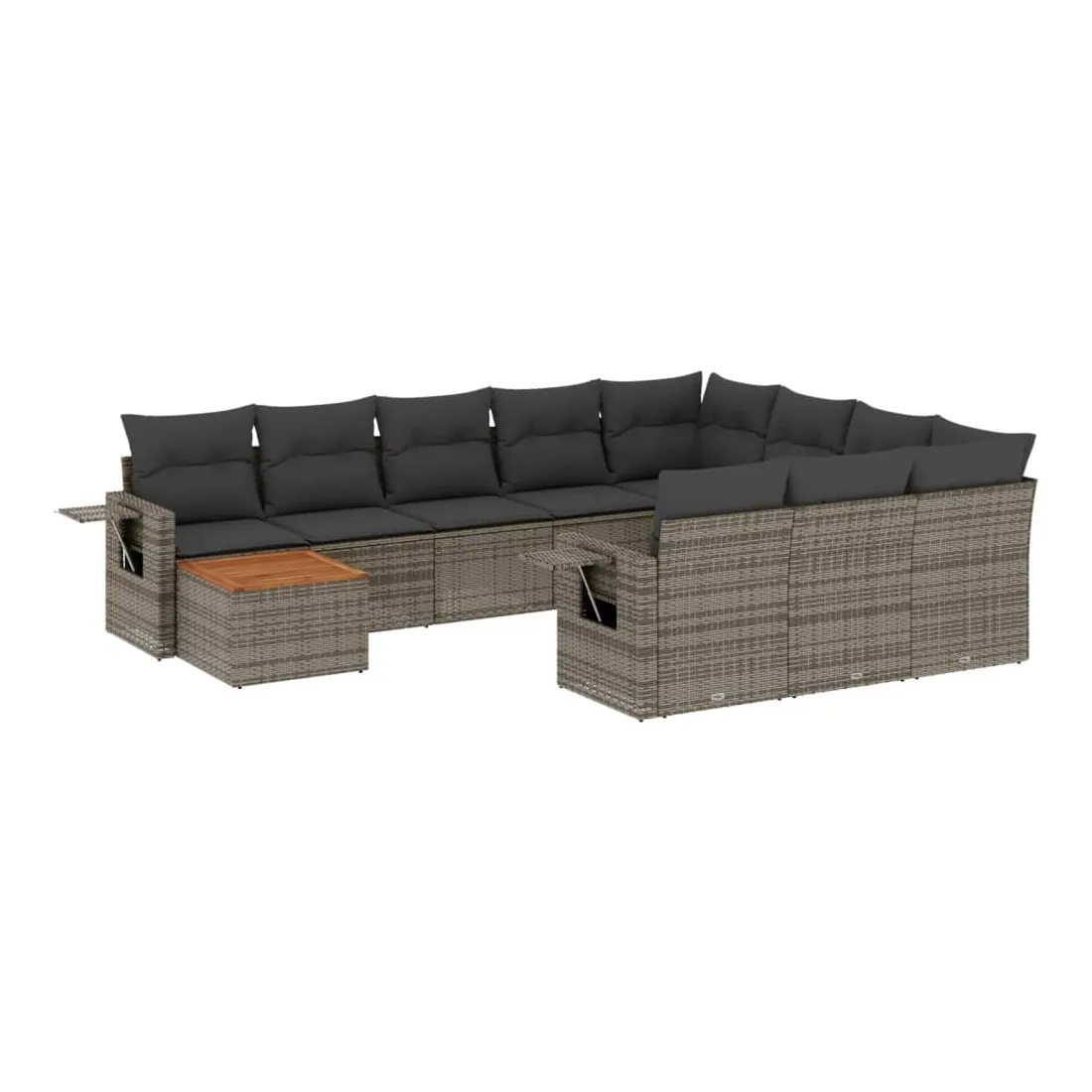Salon de jardin 11 pcs avec coussins gris résine tressée