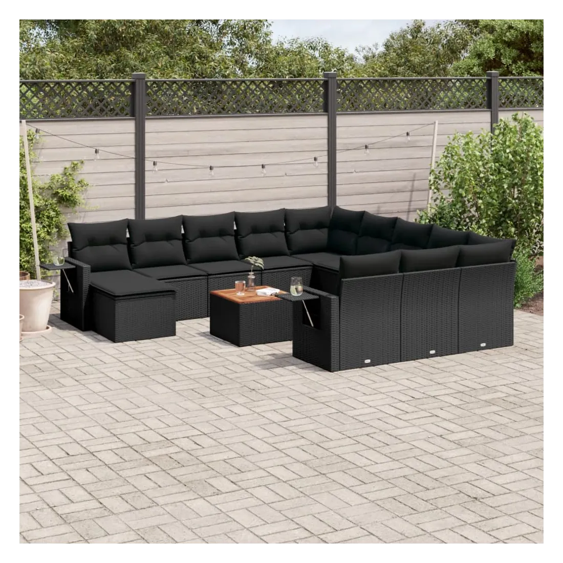 Cet ensemble de canapés de jardin est le complément parfait de votre arrière-cour, terrasse ou patio, offrant un espace confortable et accueillant pour discuter avec la famille et les amis ou simplement se détendre et profiter de l'extérieur. Matériau durable : la résine tressée, également connue sous le nom de poly rotin, est un matériau synthétique solide et nécessitant peu d'entretien qui ressemble au rotin naturel. Il est léger, facile à nettoyer et couramment utilisé pour les meubles d'extérieur en raison de sa durabilité et de ses propriétés de résistance aux intempéries.Fonction de rangement avec sac résistant à l'eau : chaque siège de jardin dispose d'un espace de rangement sous l'assise, complété par un sac résistant à l'eau pour ranger les coussins, les jouets et d'autres objets. Les sacs intérieurs sont dotés d'un couvercle et peuvent être solidement fixés aux sièges à l'aide de bandes auto-agrippantes pour plus de stabilité.Dessus stable et facile à nettoyer : cette table de jardin a un dessus en bois d'acacia robuste, durable et facile à nettoyer avec un chiffon humide.Table d'appoint pratique : ce mobilier d'extérieur comprend des tables d'appoint pliables avec un ressort à gaz sur les accoudoirs, offrant des endroits pratiques pour garder vos essentiels à portée de main.Conception modulaire : cet ensemble de meubles d'extérieur a une conception modulaire, ce qui le rend complètement flexible et facile à déplacer, afin que vous puissiez créer un agencement de meubles d'extérieur personnalisé. Bon à savoir :Pour que vos meubles d'extérieur restent beaux, nous vous recommandons de les protéger avec une housse imperméable.
